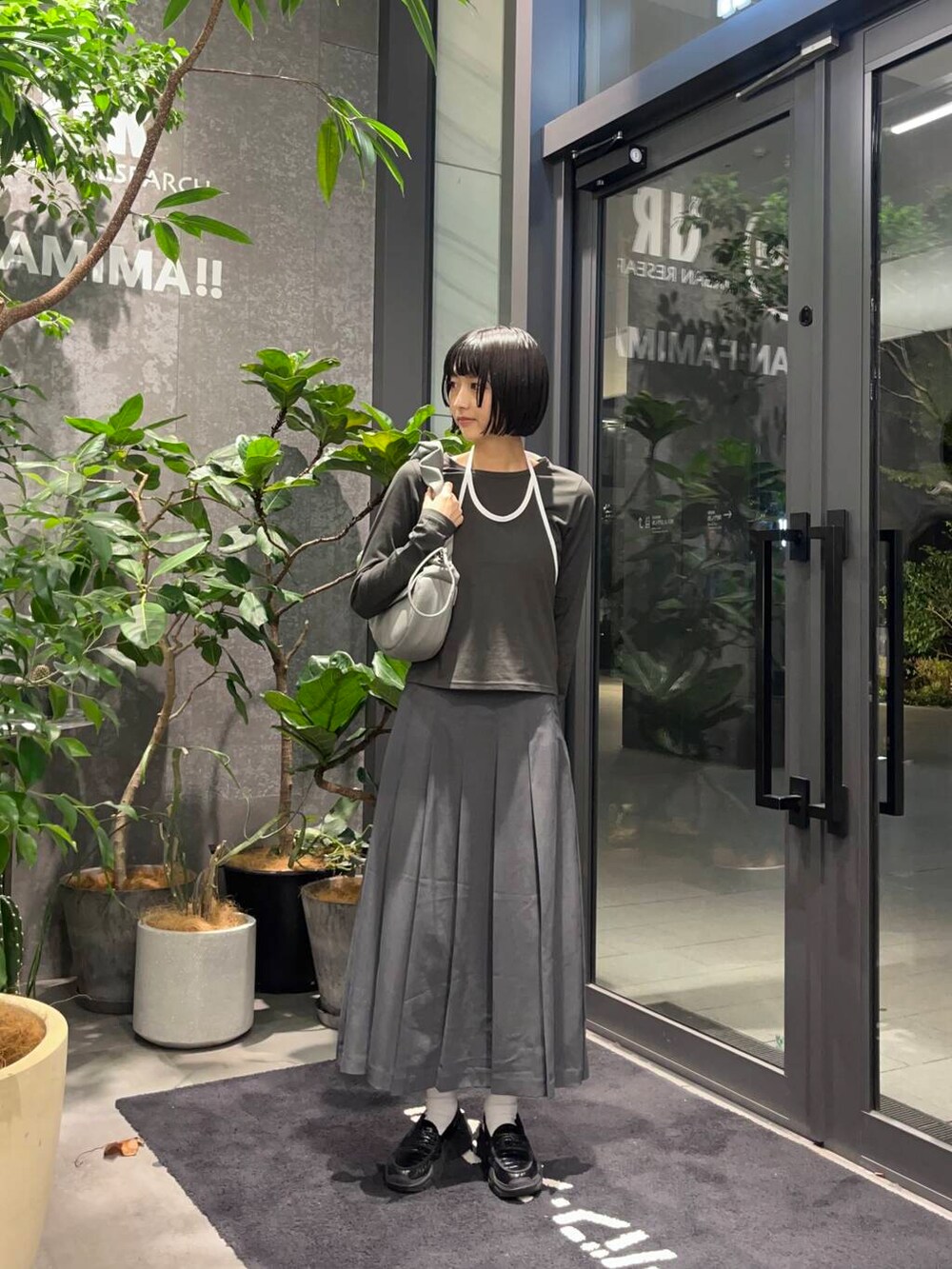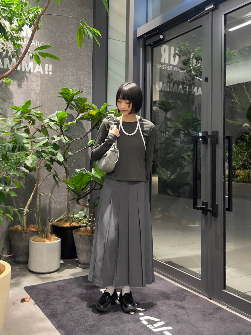 プリーツスカートの梳毛ライクの素材が上質でよき!!