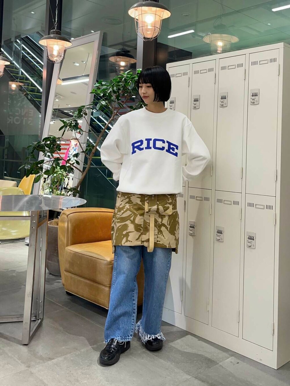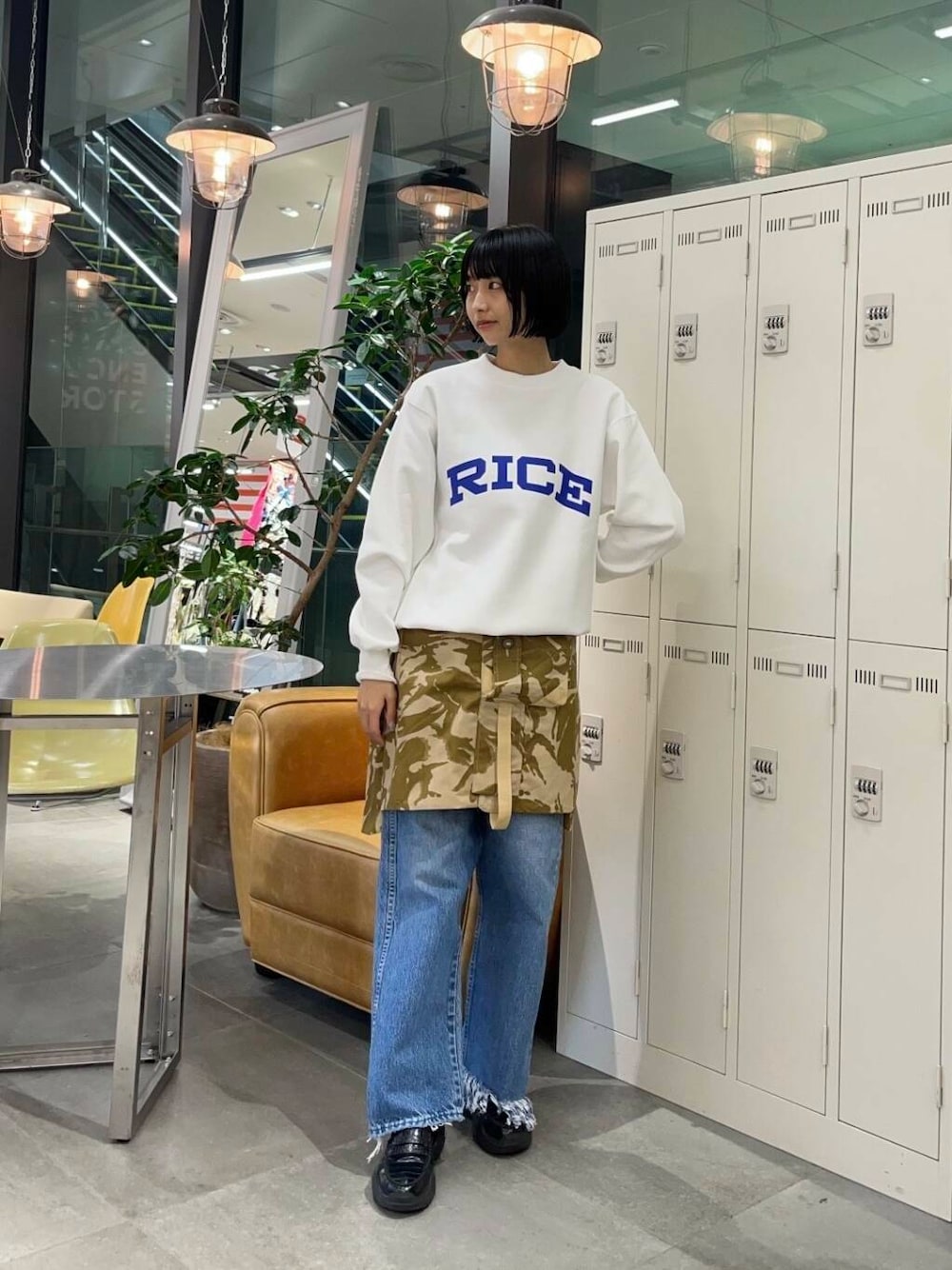 パンツはUSEDデニムを使用していて、裾がアシメントリーになってます!