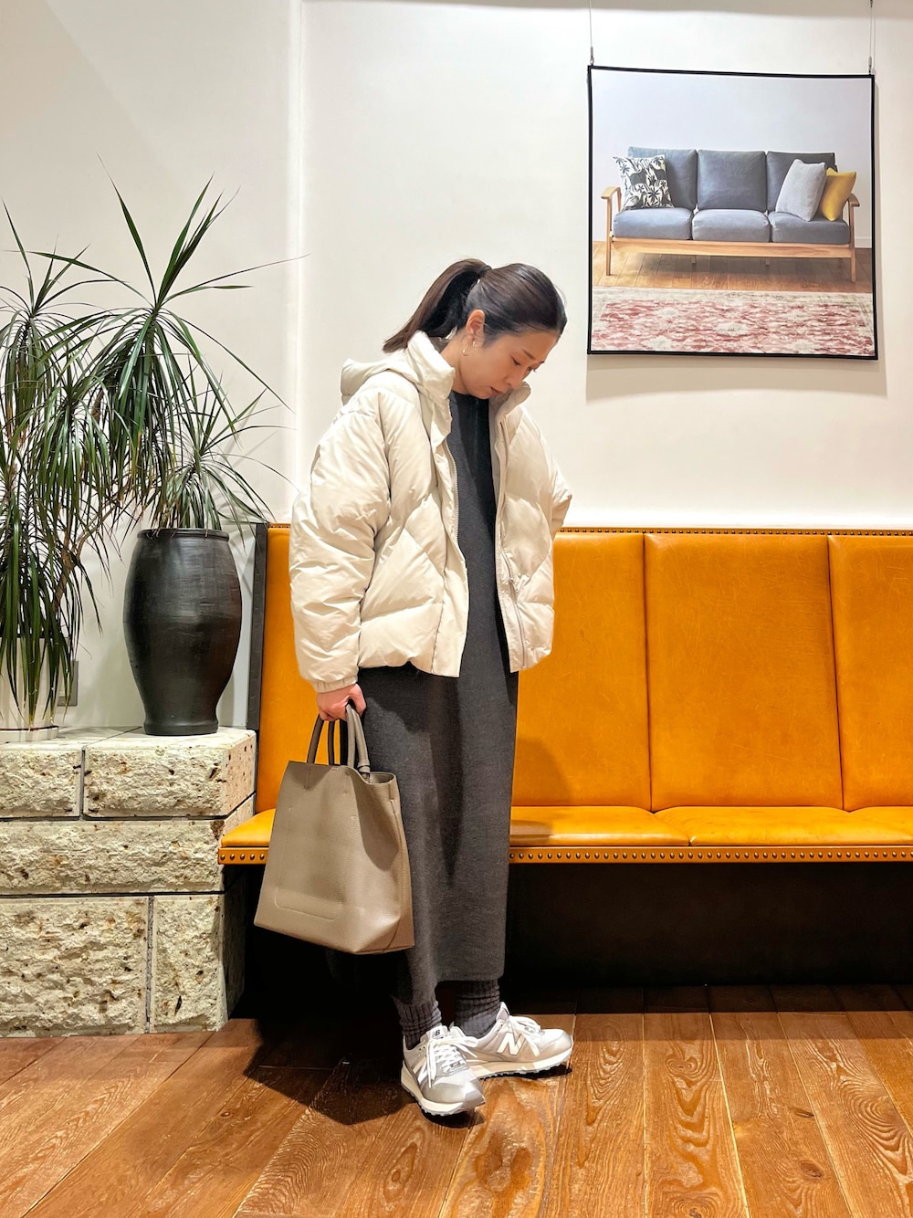 裾は太めのリブなので、スカート合わせでコンパクトにも着られます◎