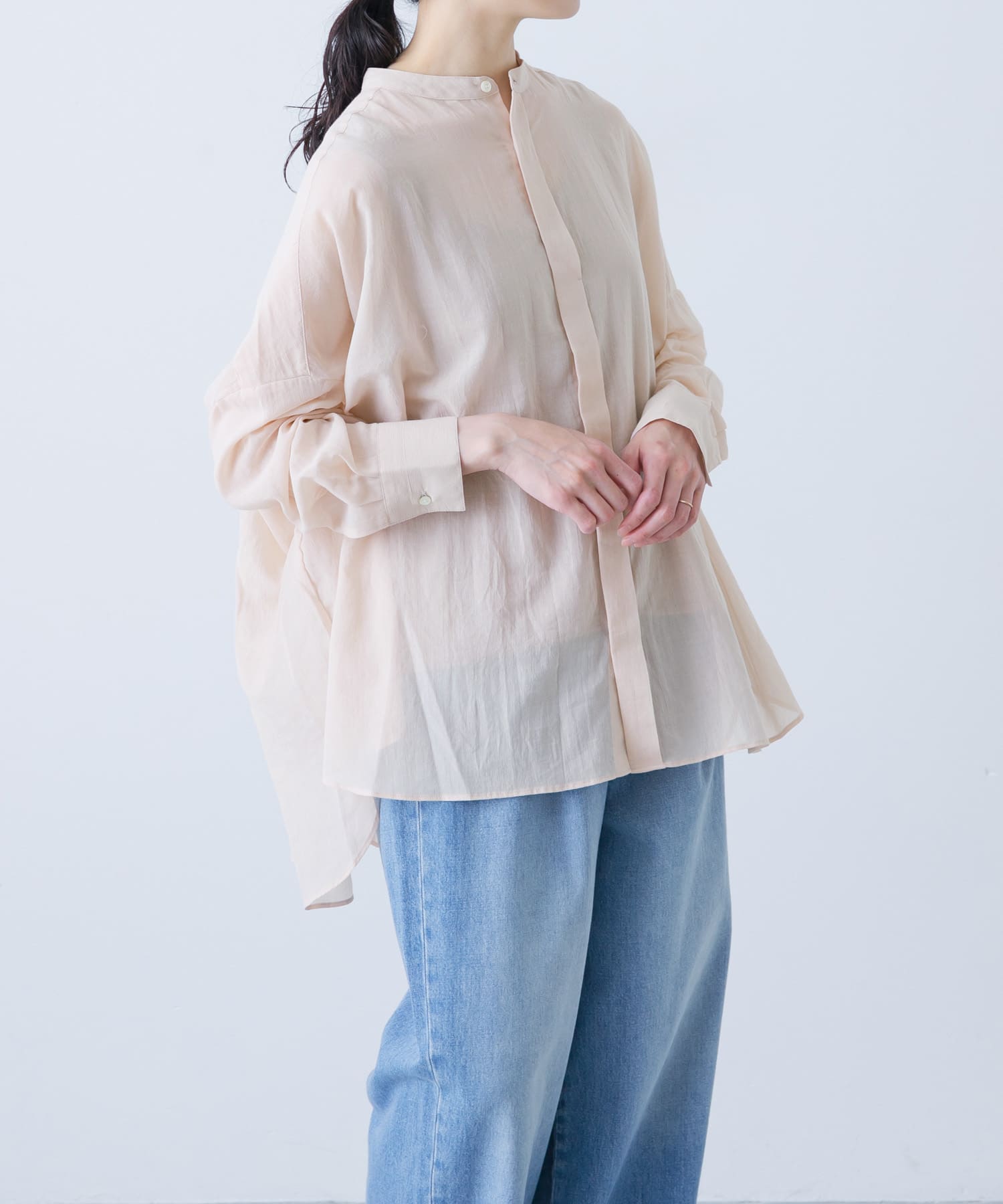 スタンドカラーのシンプルなシャツですが、後ろはタックが入っていて、デザインがとても可愛いです!