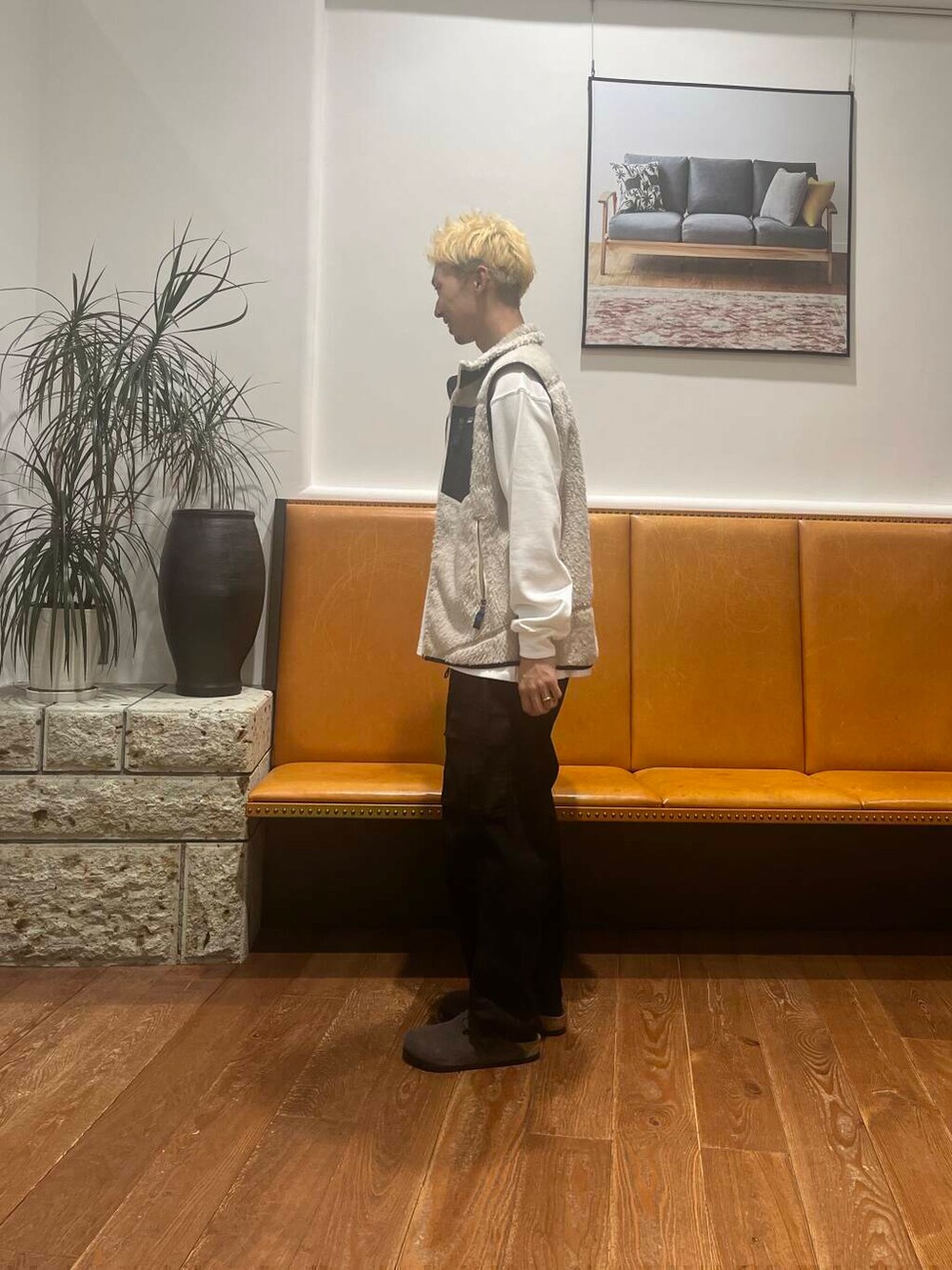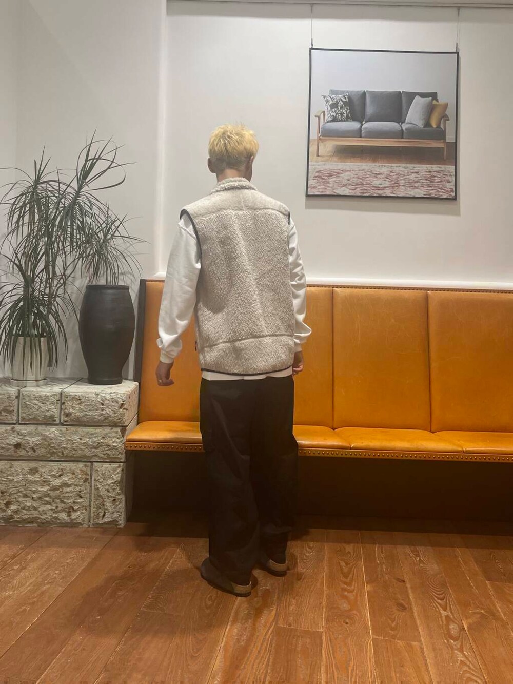 プレオーガニックコットンを使用した、ミニ裏毛素材で仕立てたロングスリーブTシャツで合わせています!