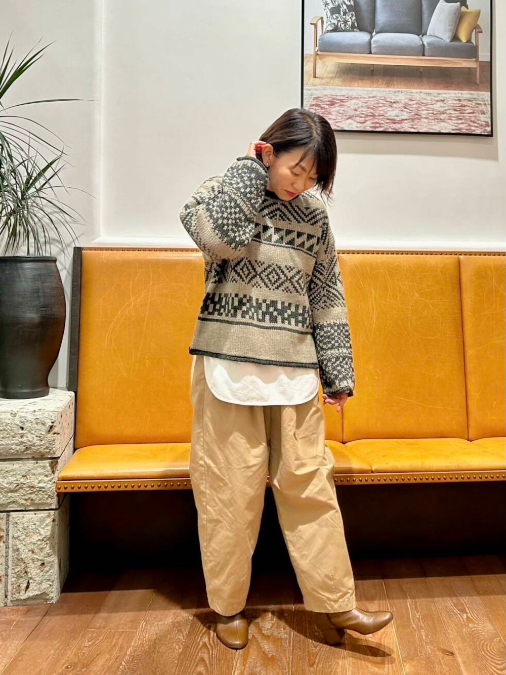 ベージュ✖️チャコールグレーの配色が効いていて、グッと大人オシャレになる!