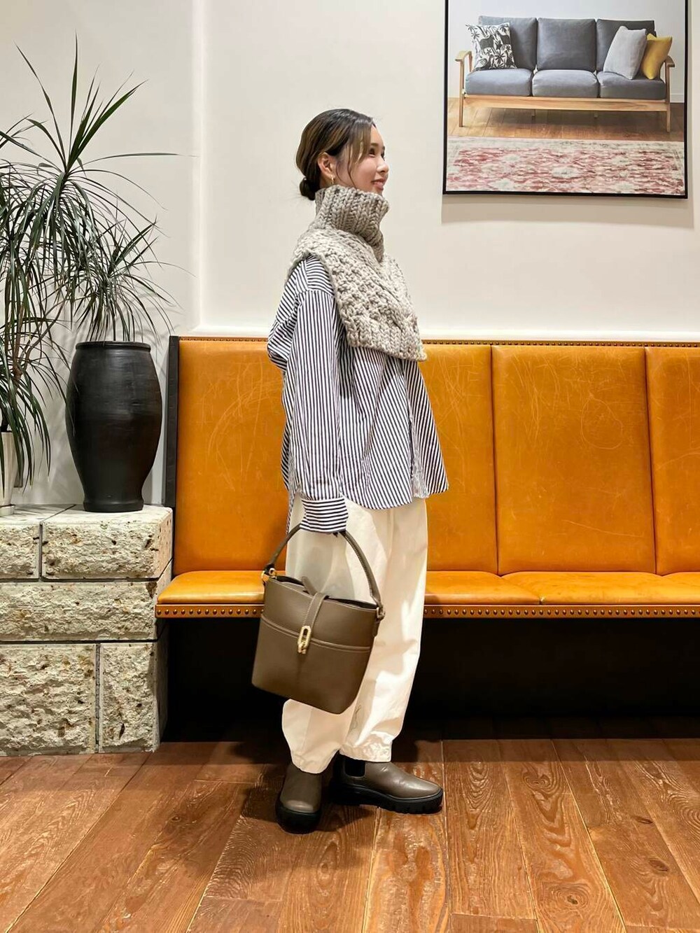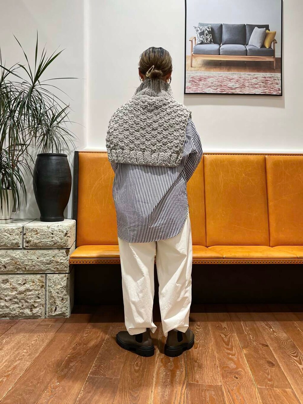 マフラーやベスト感覚で取り入れられるこちらのショルダーウォーマーは、トップスの上にはもちろん、アウターの上にも合わせていただけます!◎