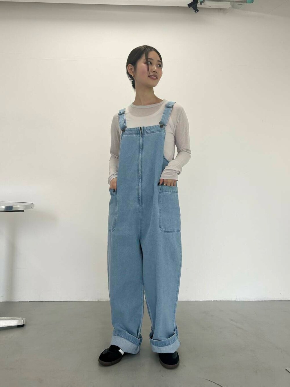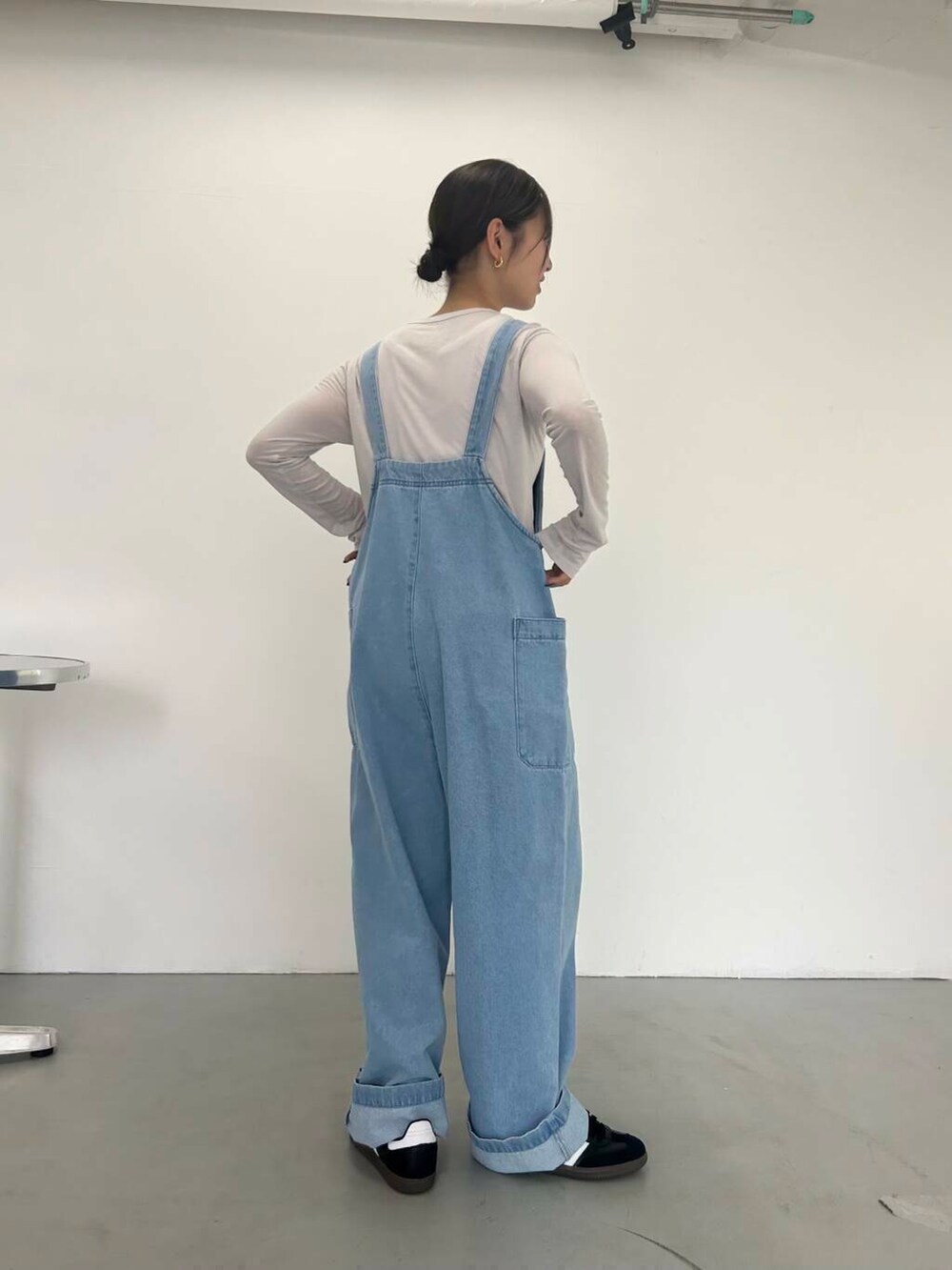 サロペットはゆったりめに着るため、157cmでMサイズを着用しています!