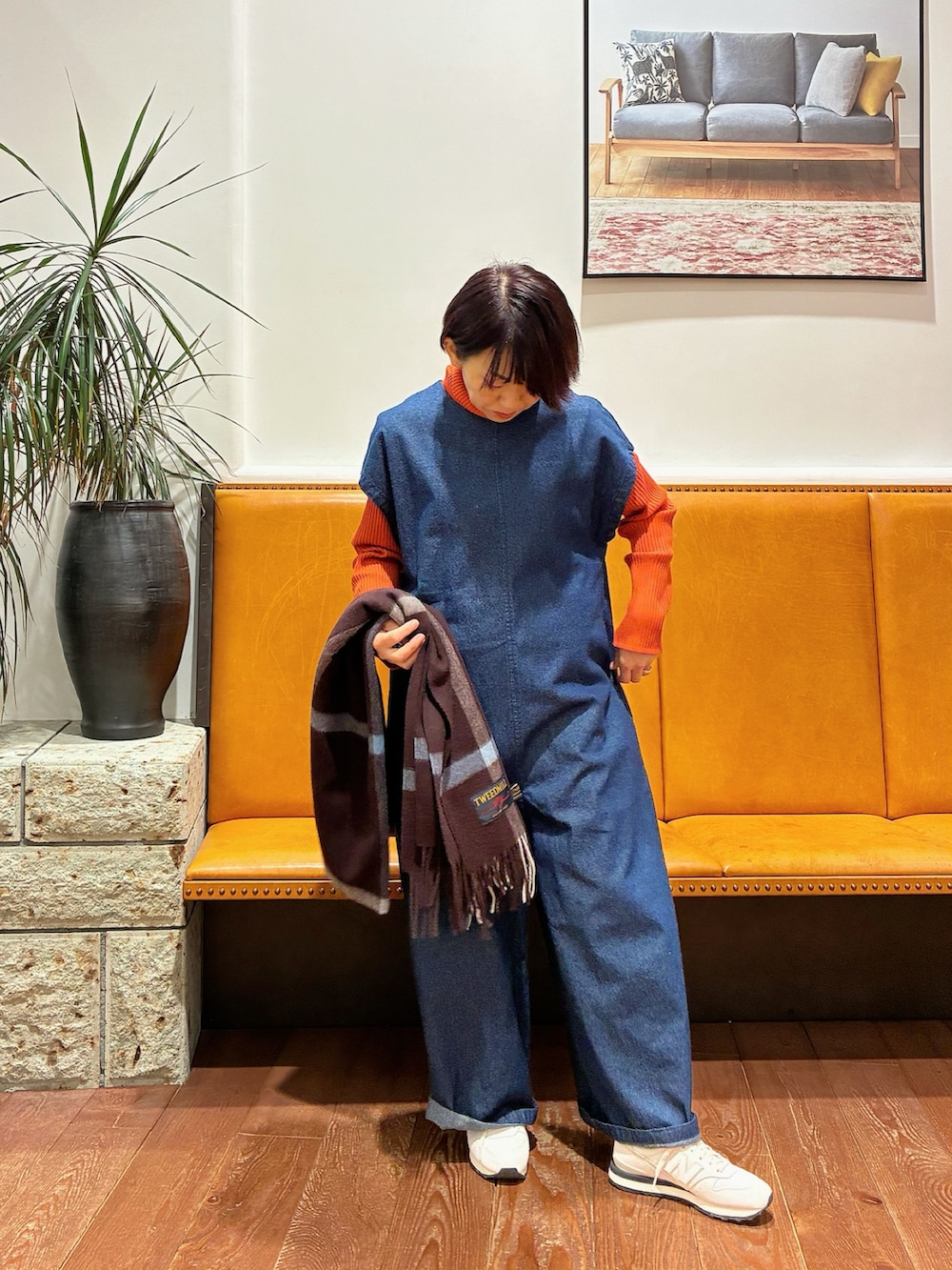 冬は、こんな鮮やかなオレンジニットをインしてみると、コーデのアクセントカラーになります🧡