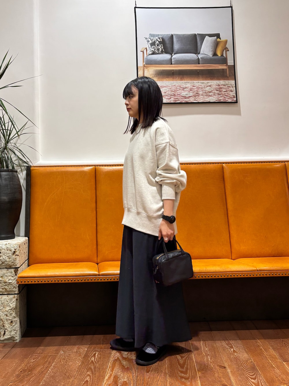 ヴィンテージツイルスカートはサテン風の生地感がポイント◎程よい光沢で上品さをプラスしつつ、スウェットなどカジュアルなアイテムに合わせても素敵です。