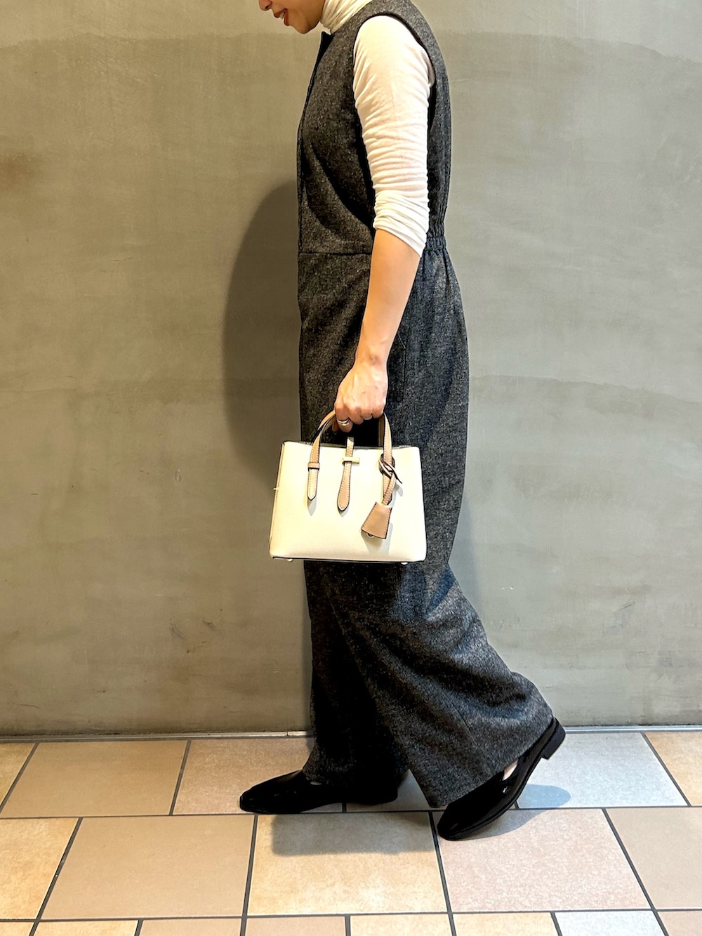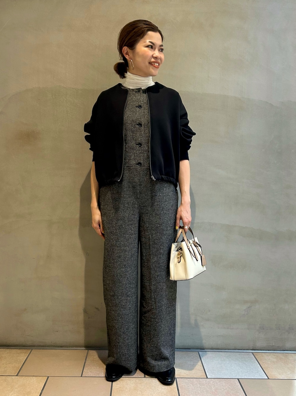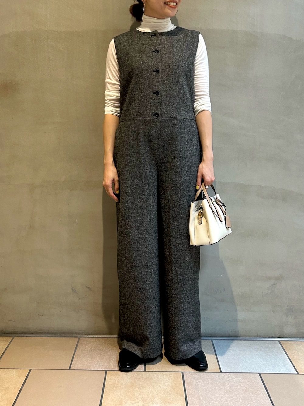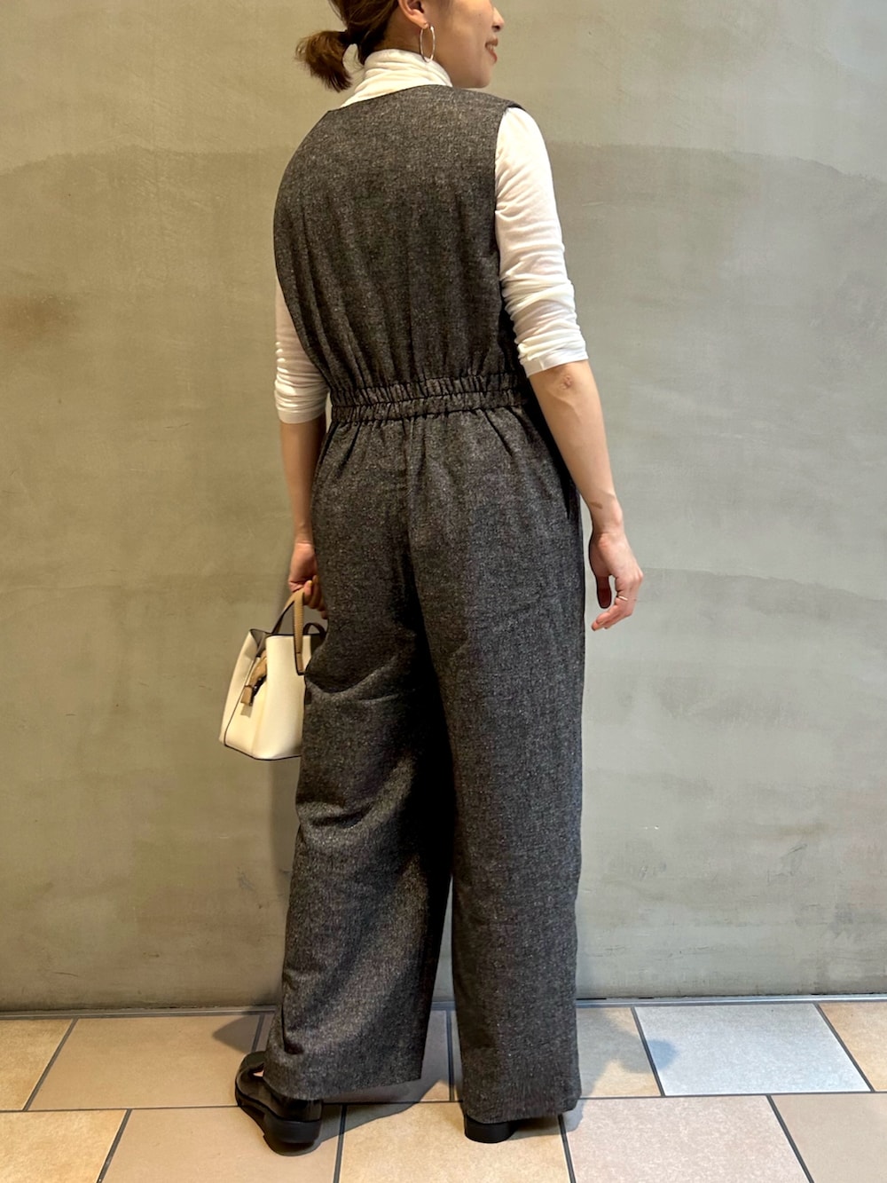 ツイードのオールインワンは、ノースリーブなのでそのまま着るとオケージョンに、タートルネックを合わせるとカジュアルダウンできるのでオンオフ兼用で着て頂けます。ツイード生地に起毛感があり、着るだけで秋らしさを演出できますよ🙋♀️