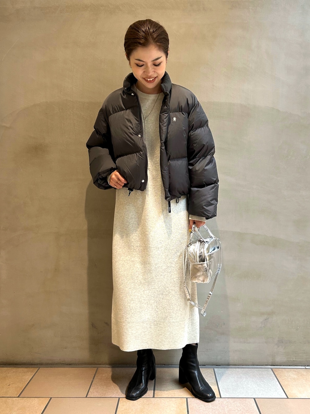 着丈が短いので、ロングワンピースなど着丈が長いアイテムを合わせるコーディネートがおすすめです🙆♀️