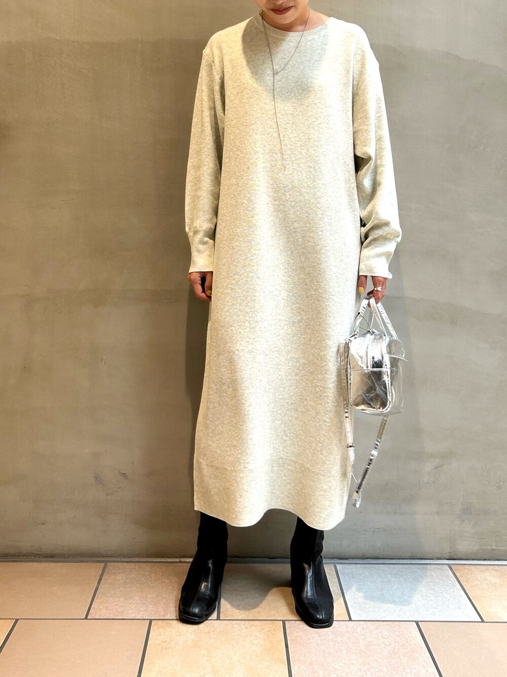 着用しているニットワンピースはFORK&SPOONのアイテムで、背中のジップがポイントです🌟