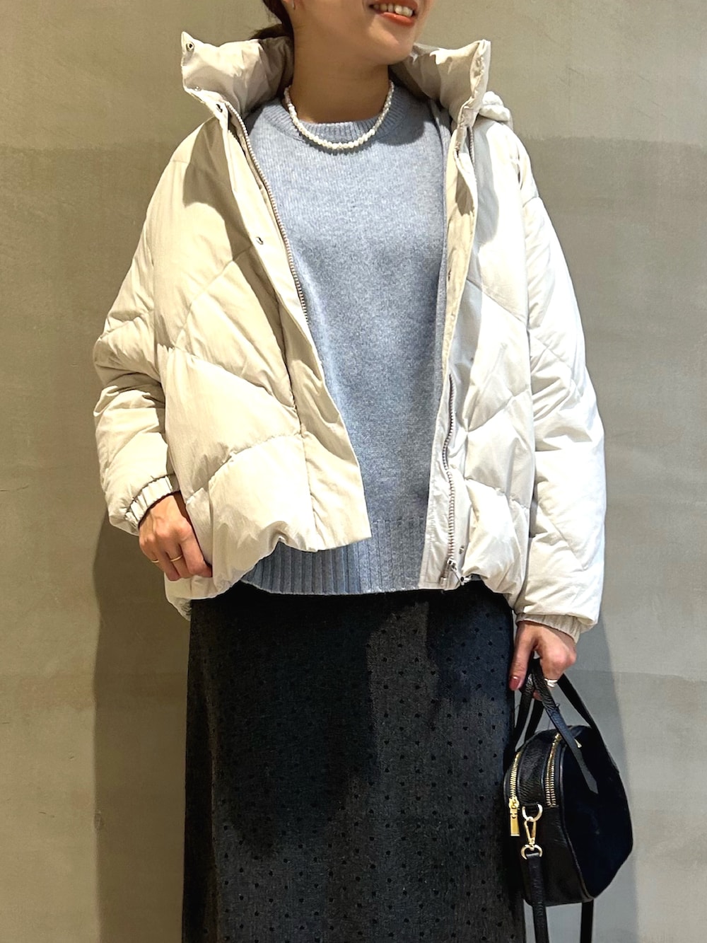 毎年大人気の、サステナブルなグリーンダウンを使用したダウンジャケットは軽くてとても暖かいだけでなく、ダイヤ柄のキルティング刺繍がキレイめな装いにもぴったりです🙆♀️