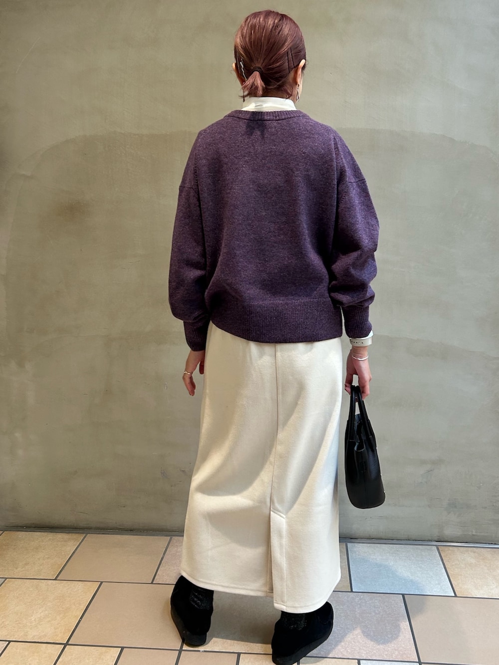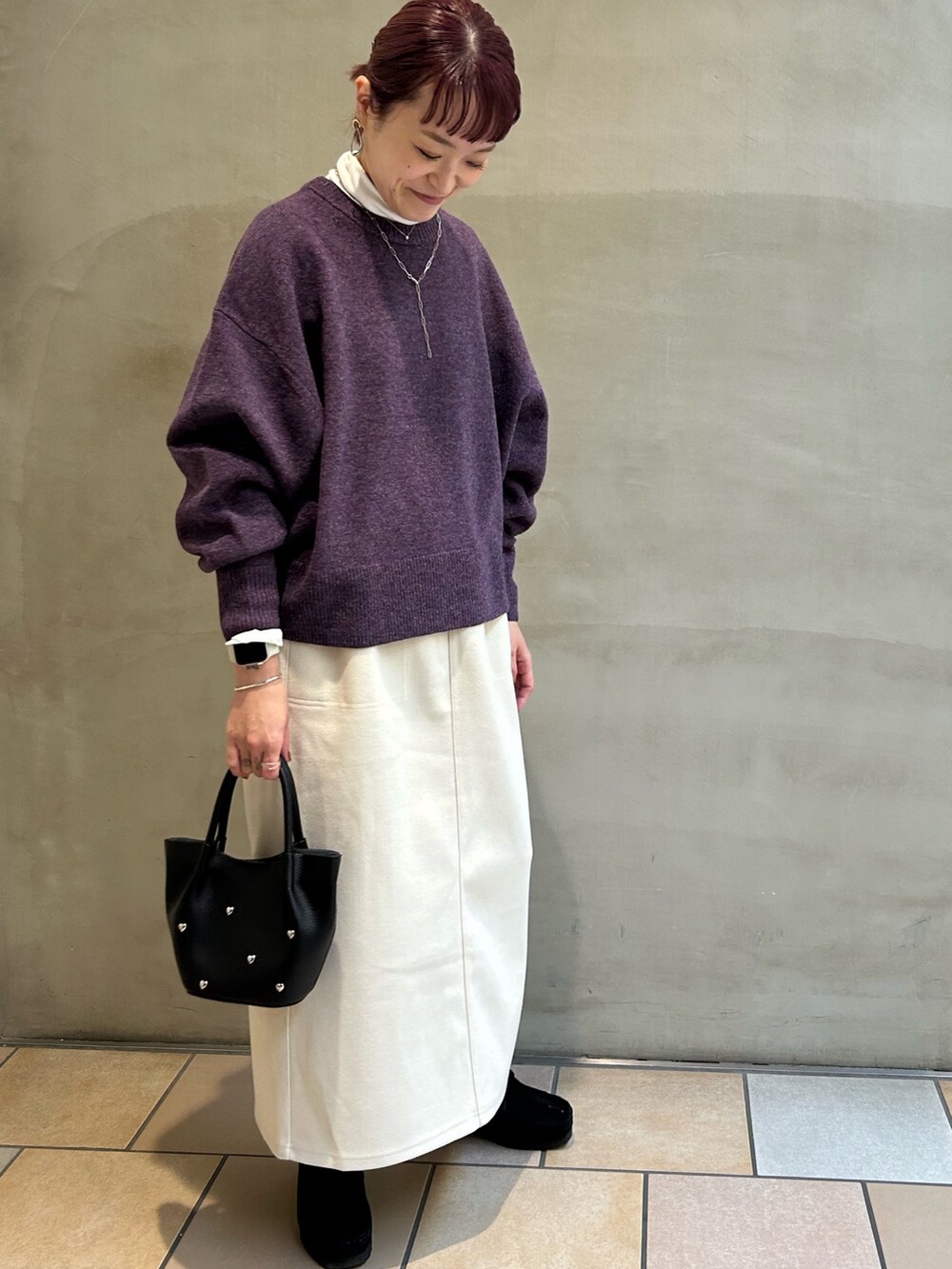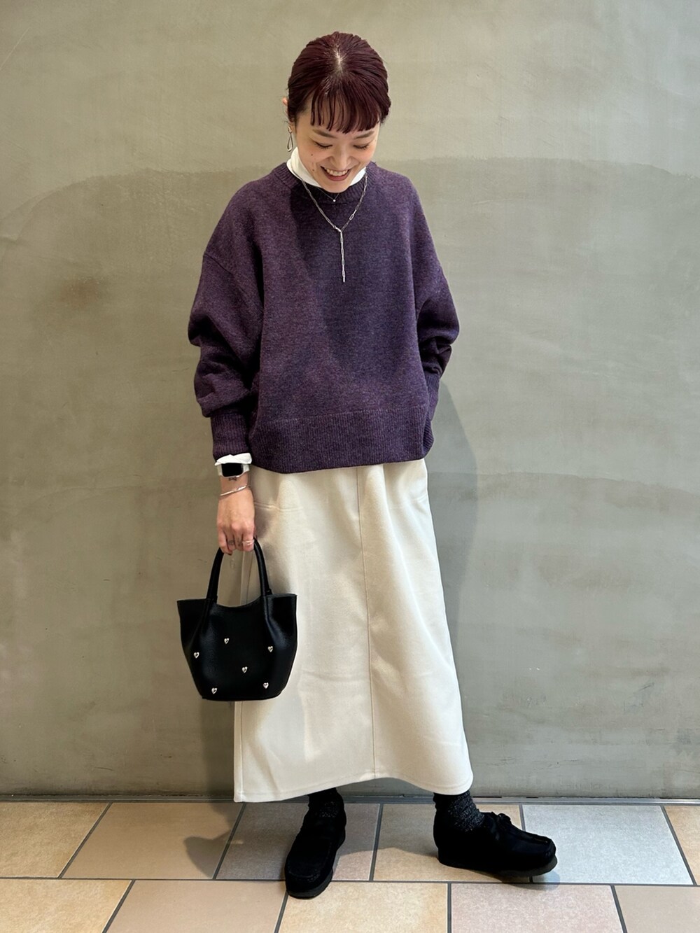 かぐれのハミルトンニット、パープルが珍しく、とてもキレイな色味です。サイズもゆったりしてるので中にインナーはさんでいただけます。