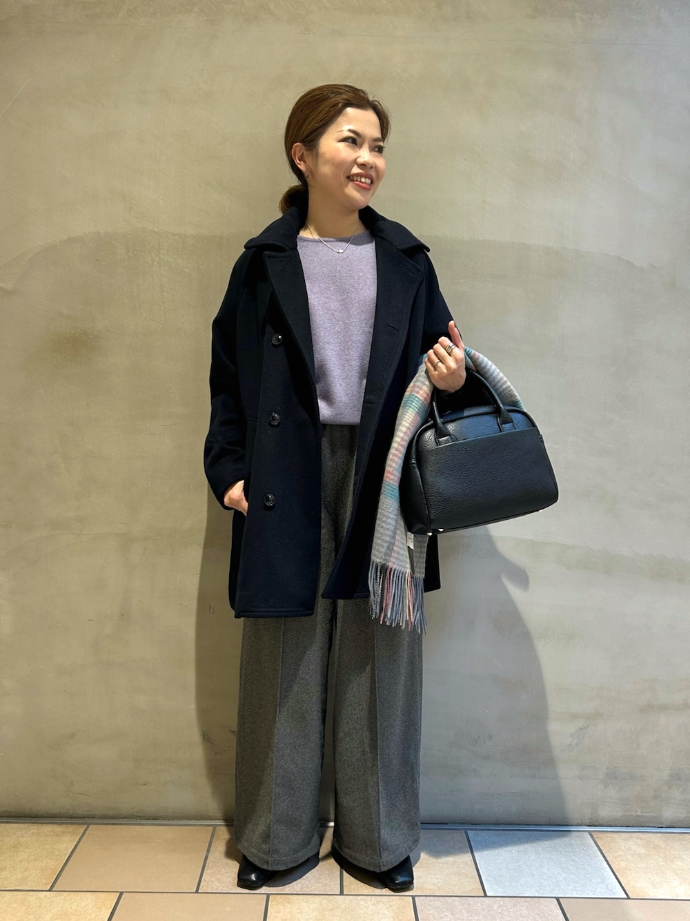 カラーニットをメインに冬らしいヘリンボーンのパンツと、全体的にトーンを落ち着かせてスタイリッシュな印象にまとめました🙆♀️