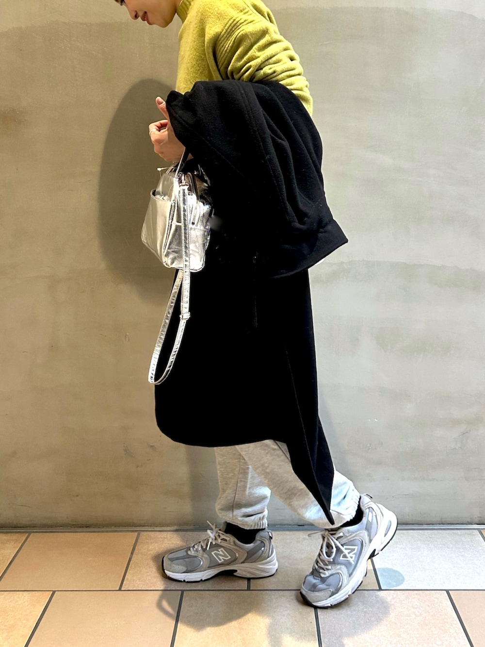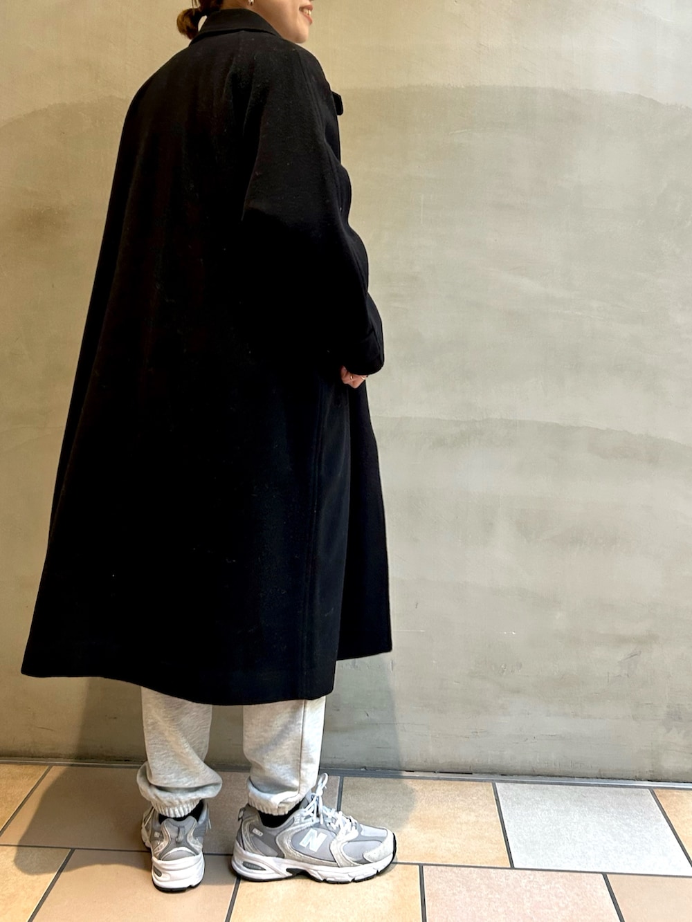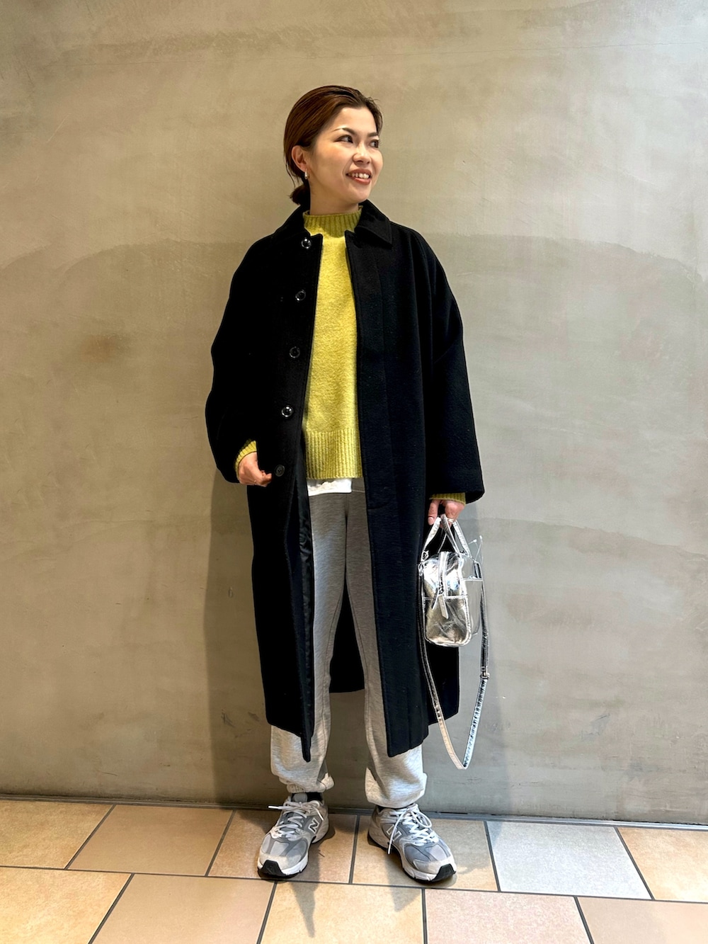 バルマカンコート+スウェットパンツ+スニーカーでメンズライクに気崩したところがポイントです🙆♀️お子様の習い事のお迎えや試合の応援など、ラフすぎないけど、楽に着たい時におすすめです‼️