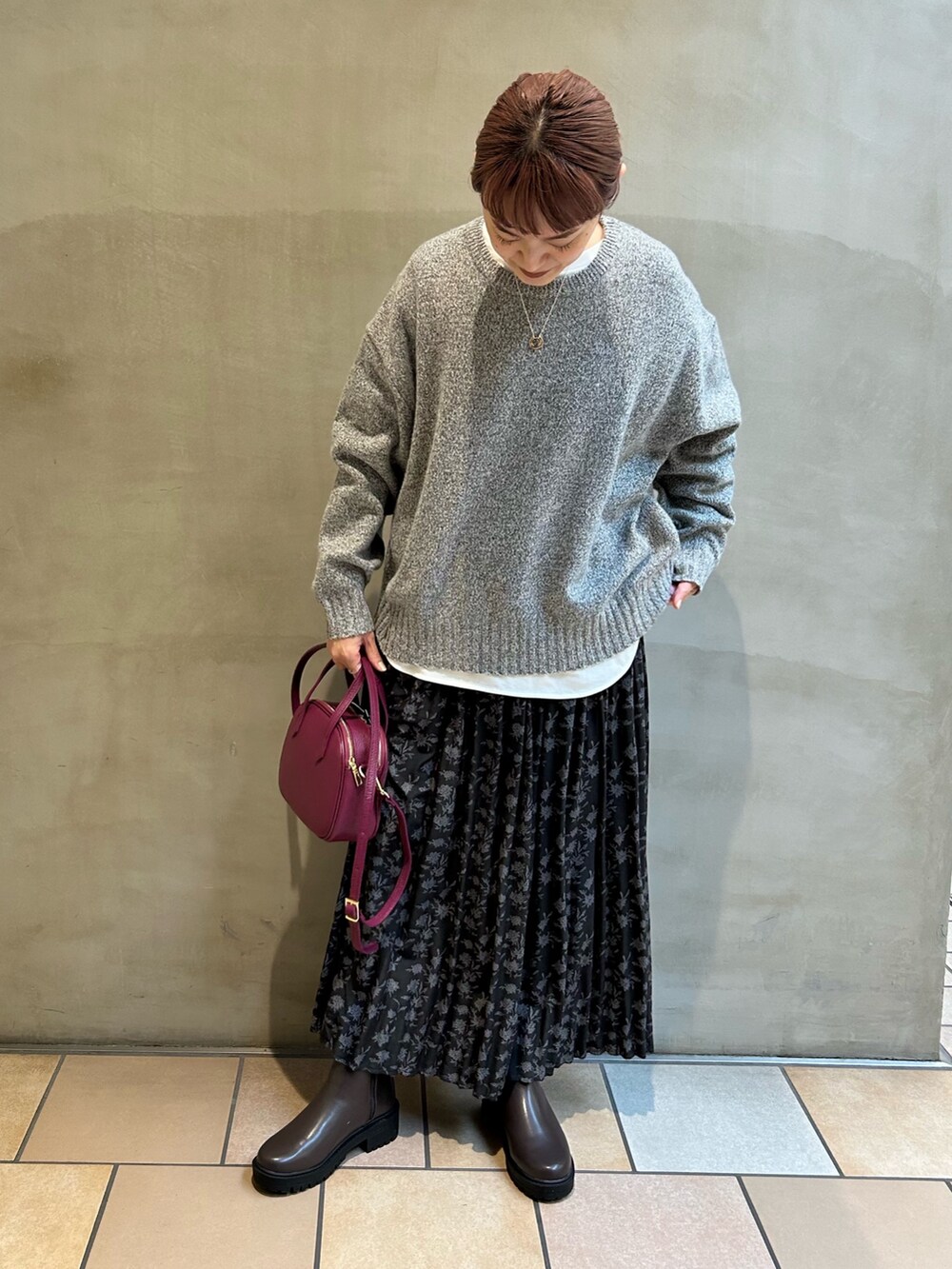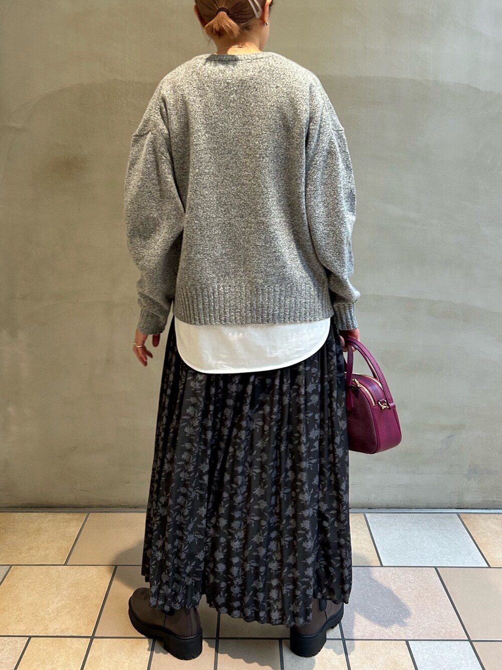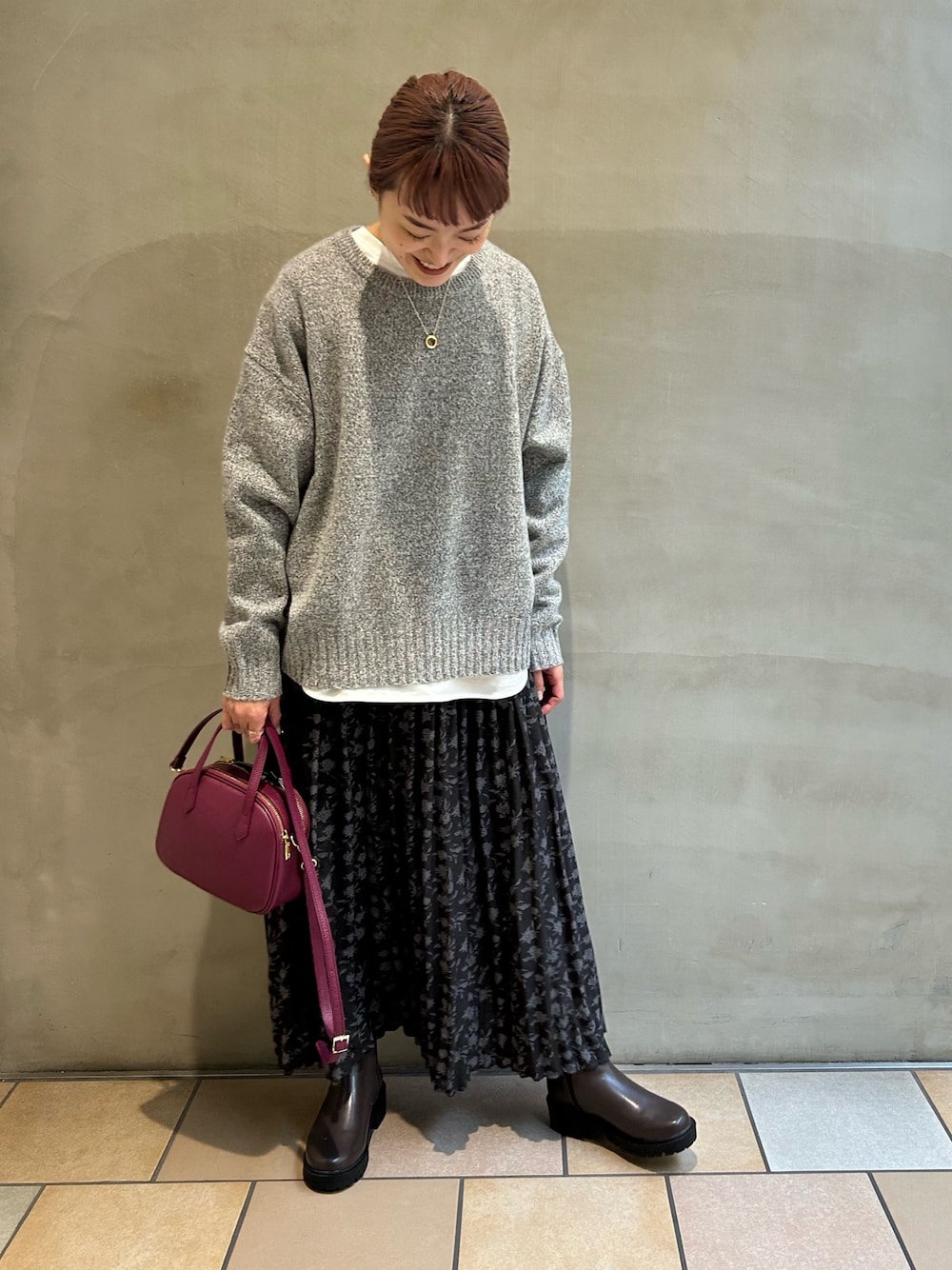 フラワープリントのスカートは大人可愛いのに加えて、ポリエステル素材なのでシワになりにくく、オールシーズン使えてとても優秀です。