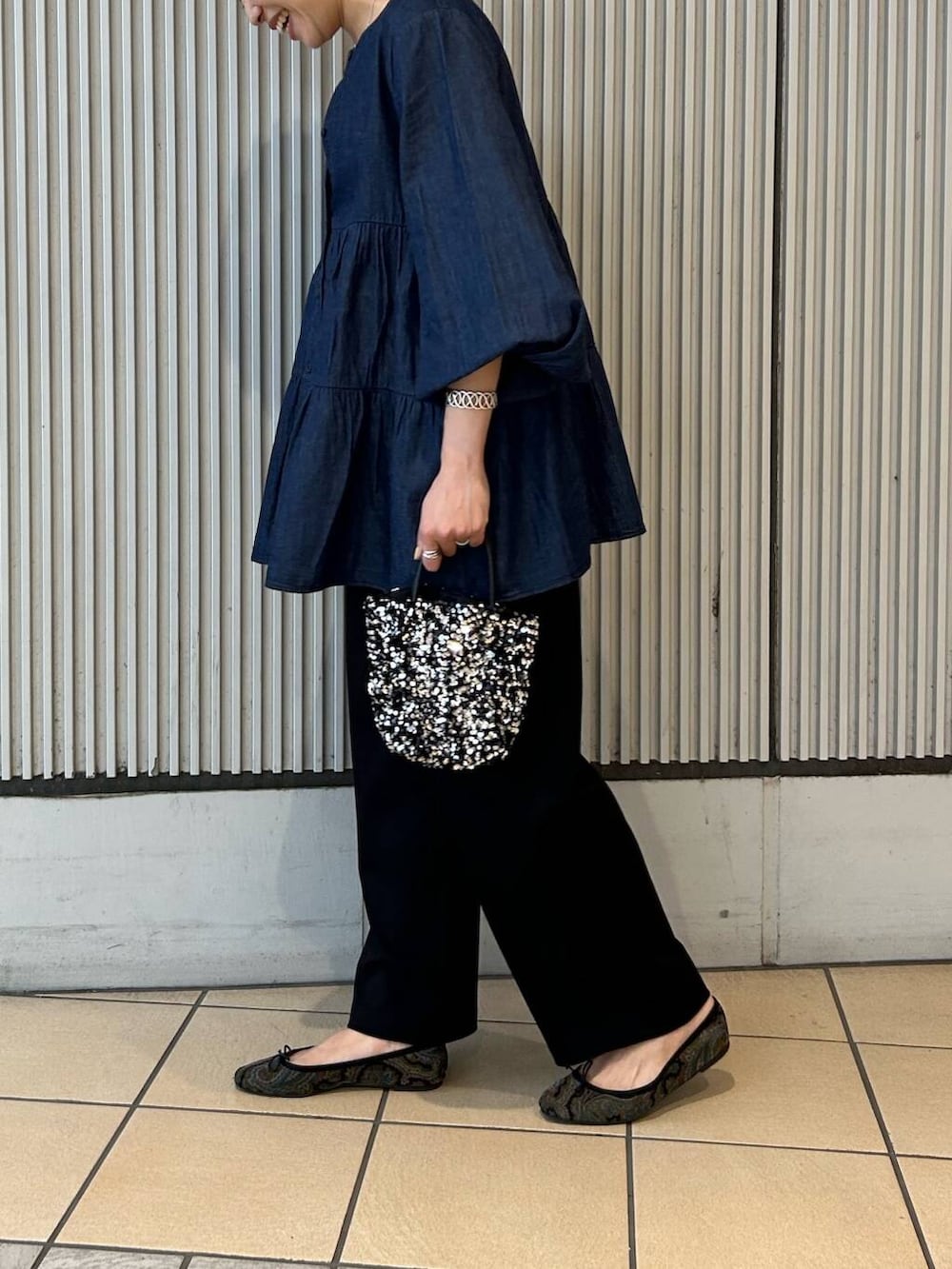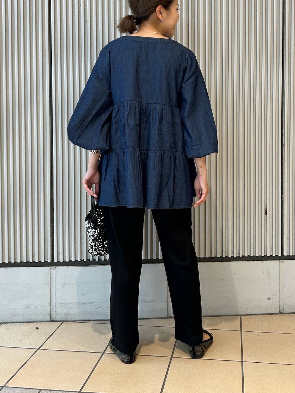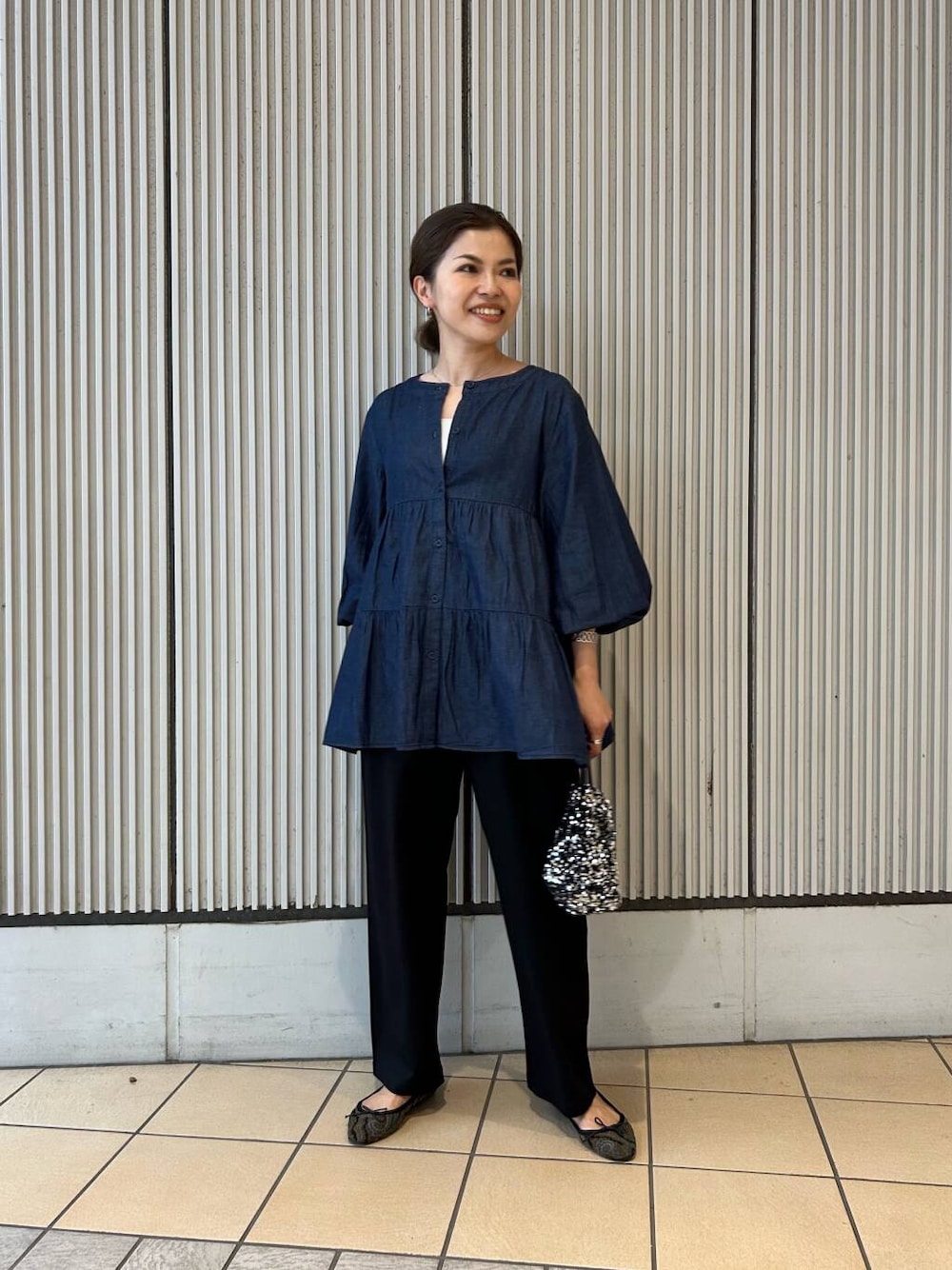 新作のデニムブラウスは切り替えが高い位置にあってスタイルアップが出来、程よいボリューム感で着映えるので秋のお出かけにもぴったりです🙆♀️