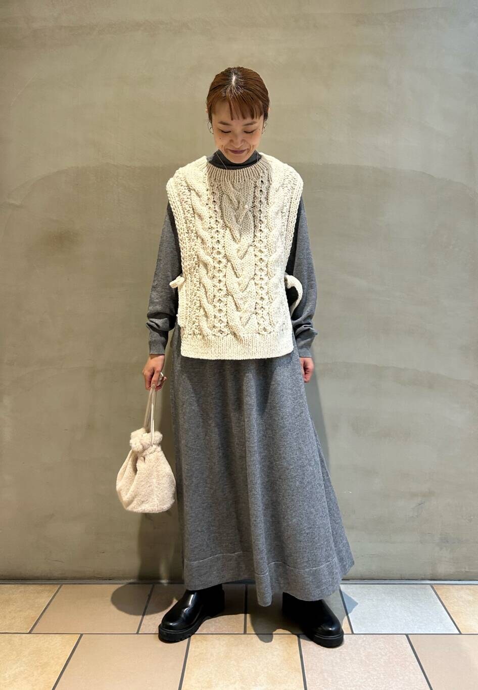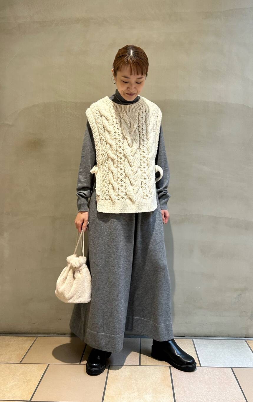 ニットベスト、ボリュームがあって可愛いです。シンプルなコーデが一段と華やかになります。