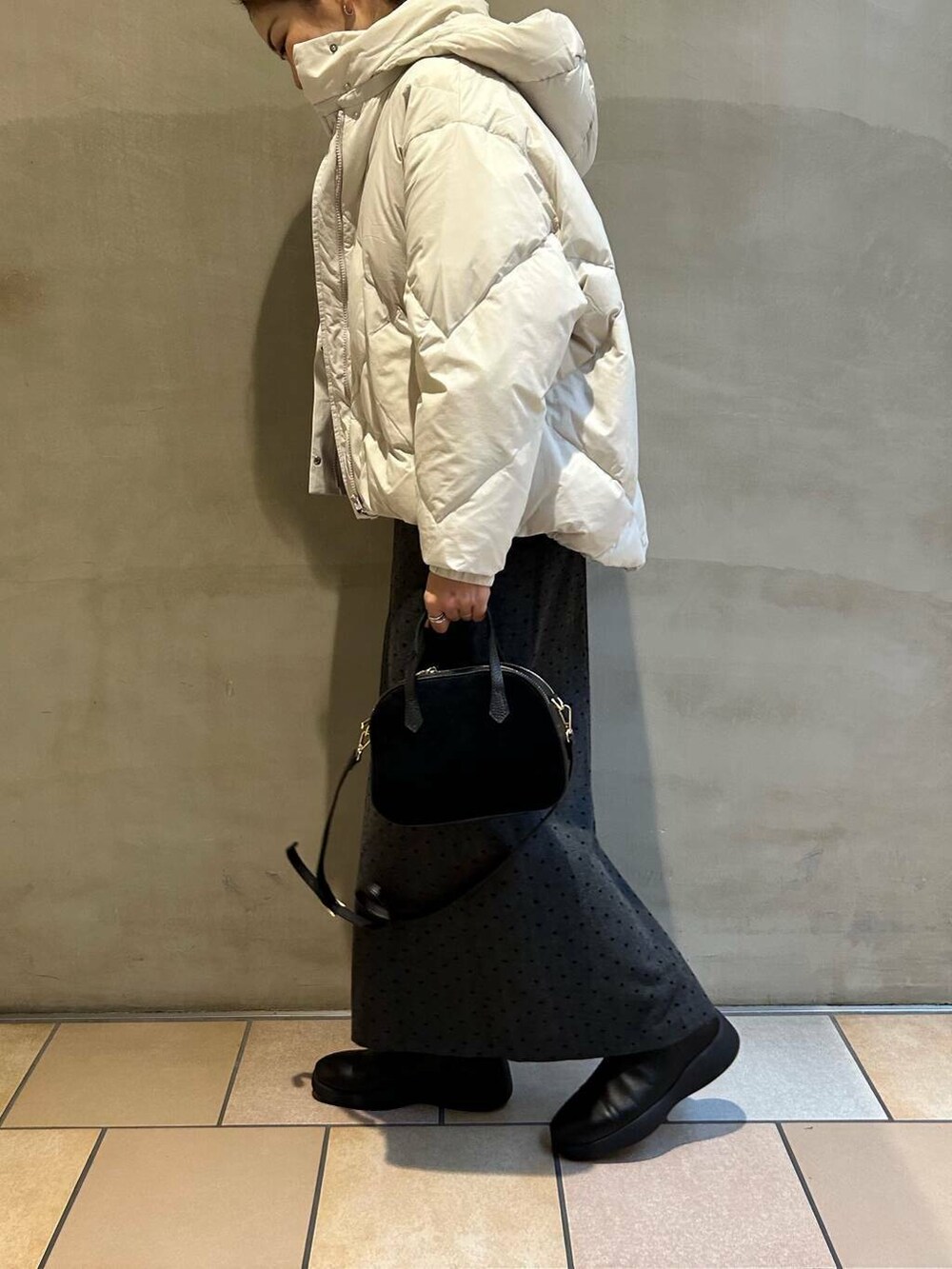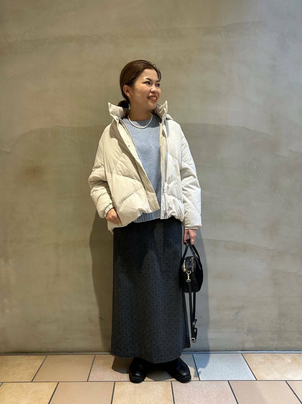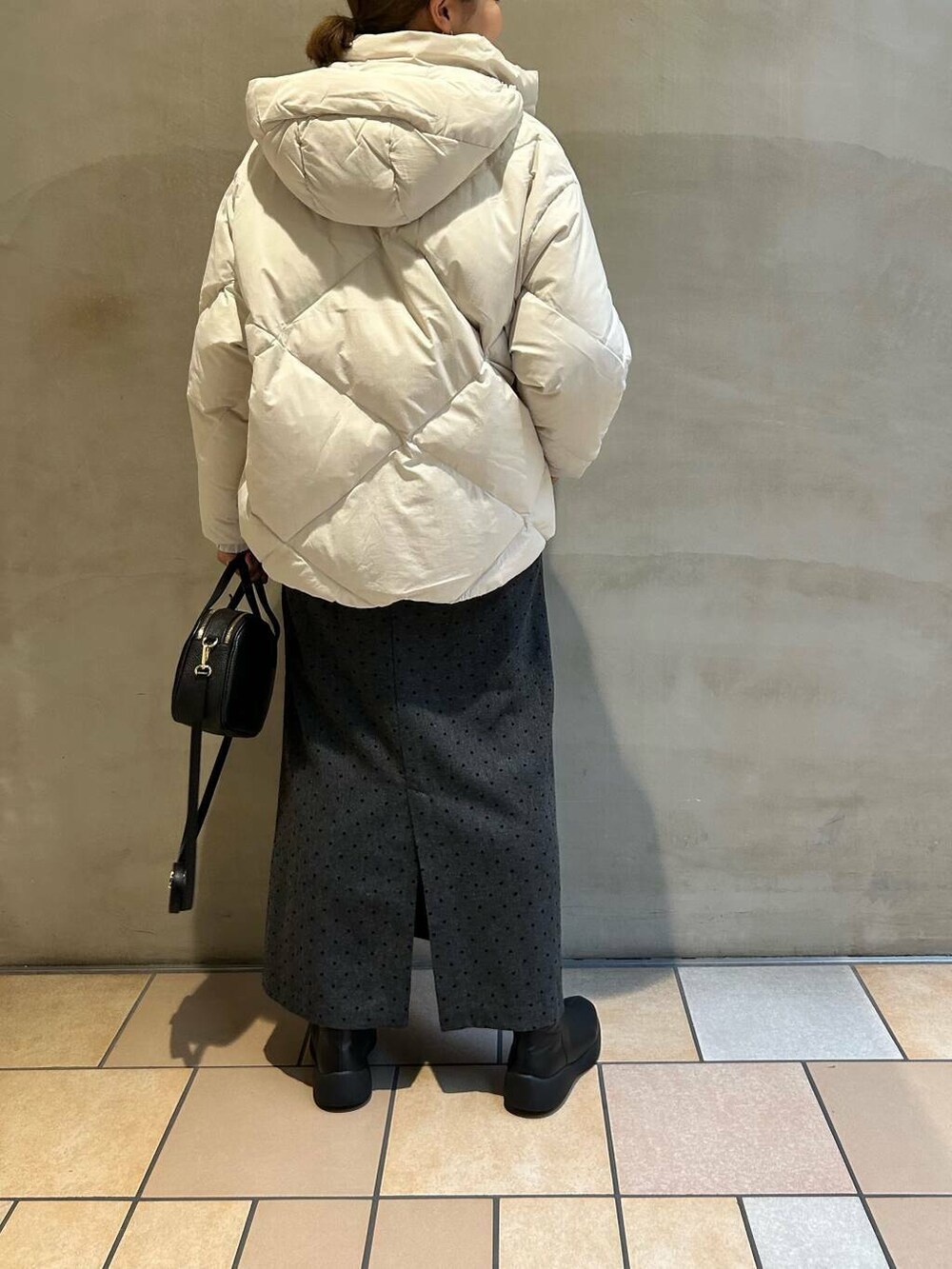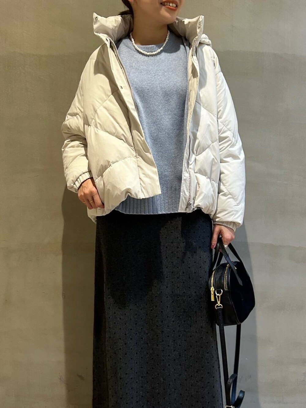 毎年大人気の、サステナブルなグリーンダウンを使用したダウンジャケットは軽くてとても暖かいだけでなく、ダイヤ柄のキルティング刺繍がキレイめな装いにもぴったりです🙆♀️
