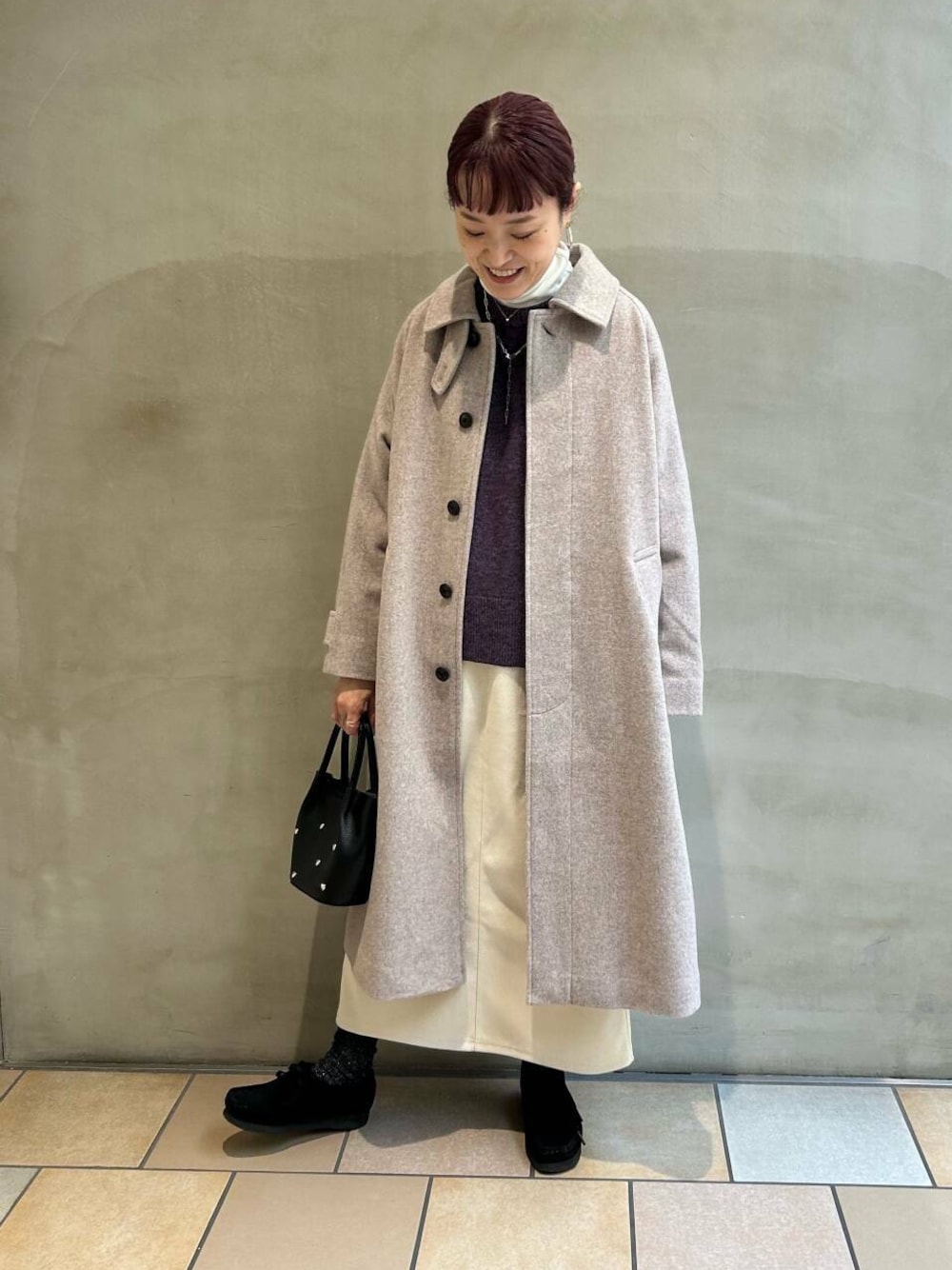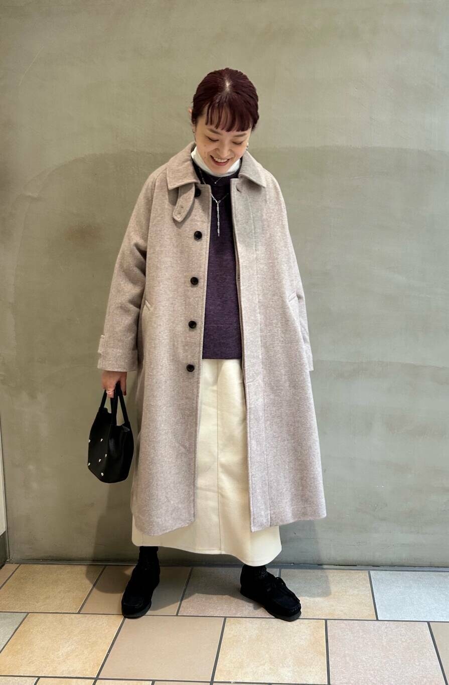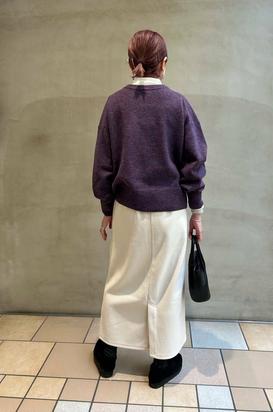 かぐれのハミルトンニット、パープルが珍しく、とてもキレイな色味です。サイズもゆったりしてるので中にインナーはさんでいただけます。