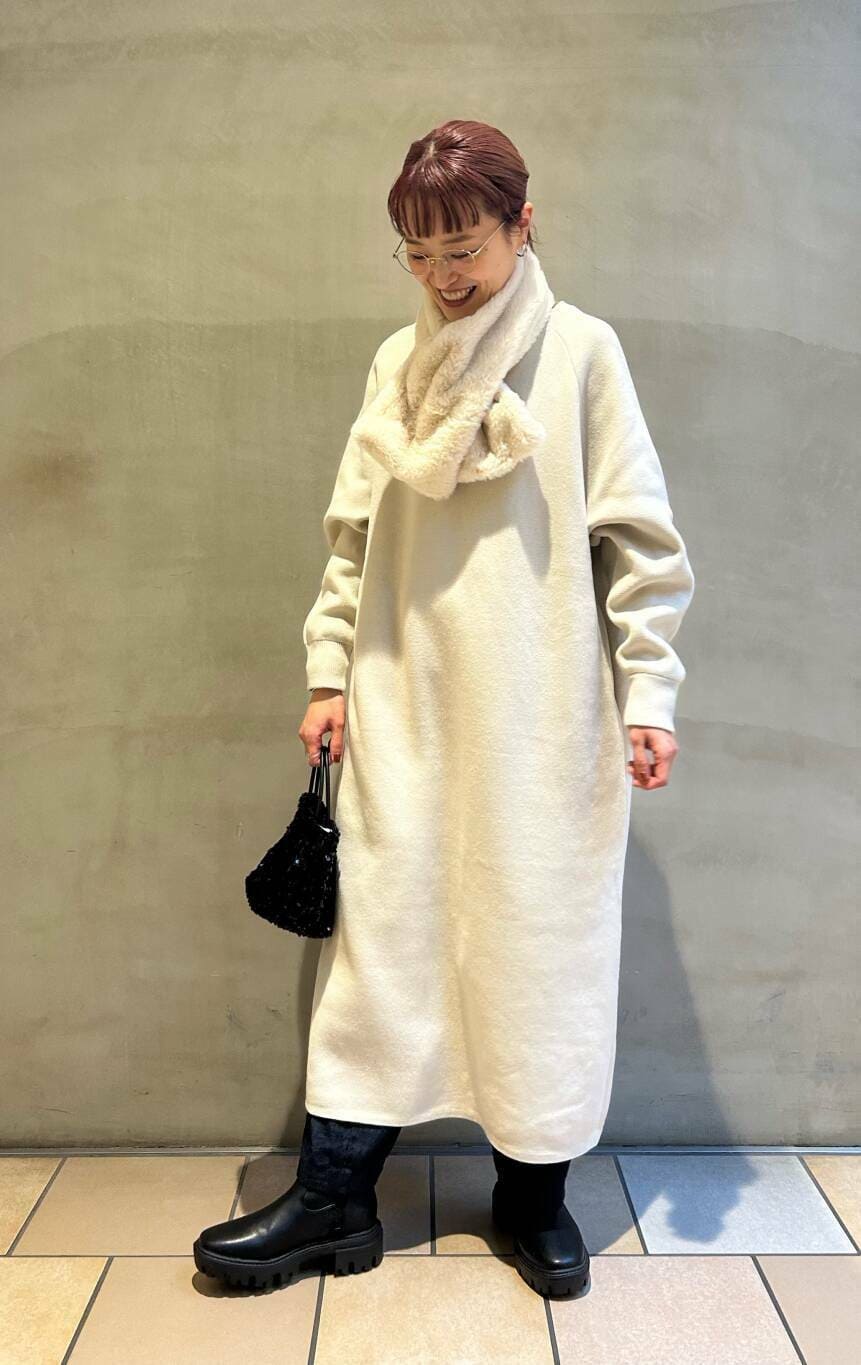 スウェットライクな肉厚ワンピースはとても楽ちんで、手洗い可なのも嬉しいポイントです。