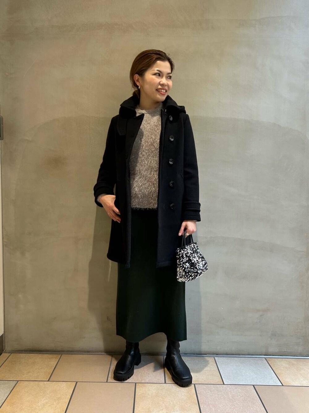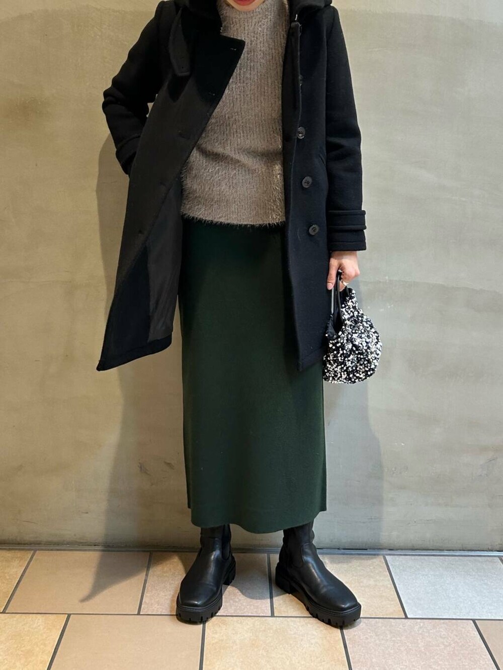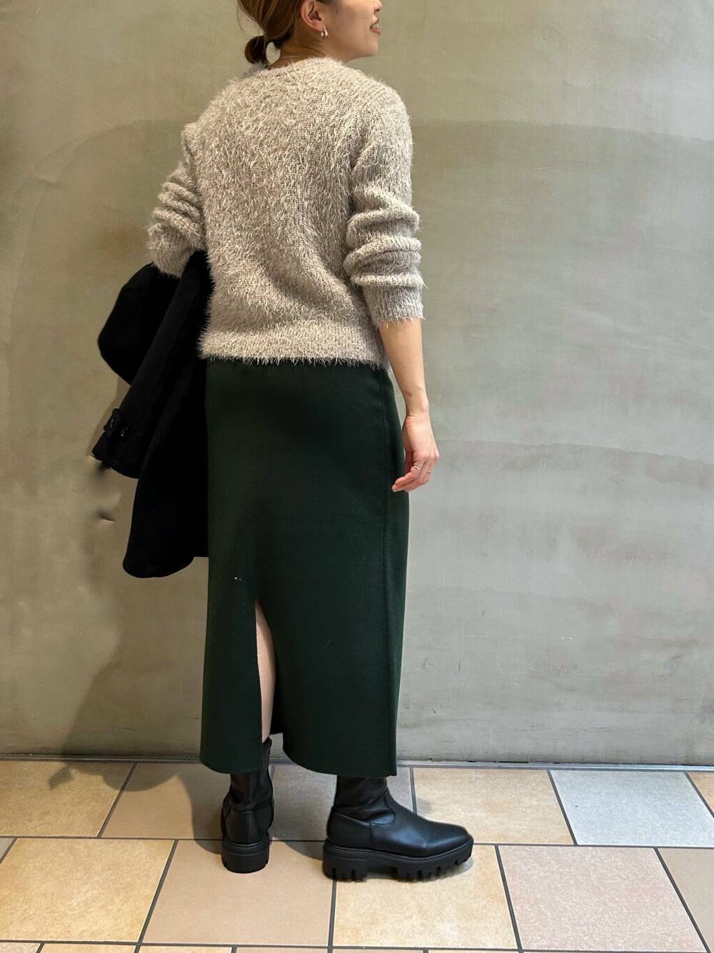 シャギーニットにニットスカートを合わせて、きちっと感と楽さを両方兼ね備えたスタイリングにしたところがポイントです🙆♀️