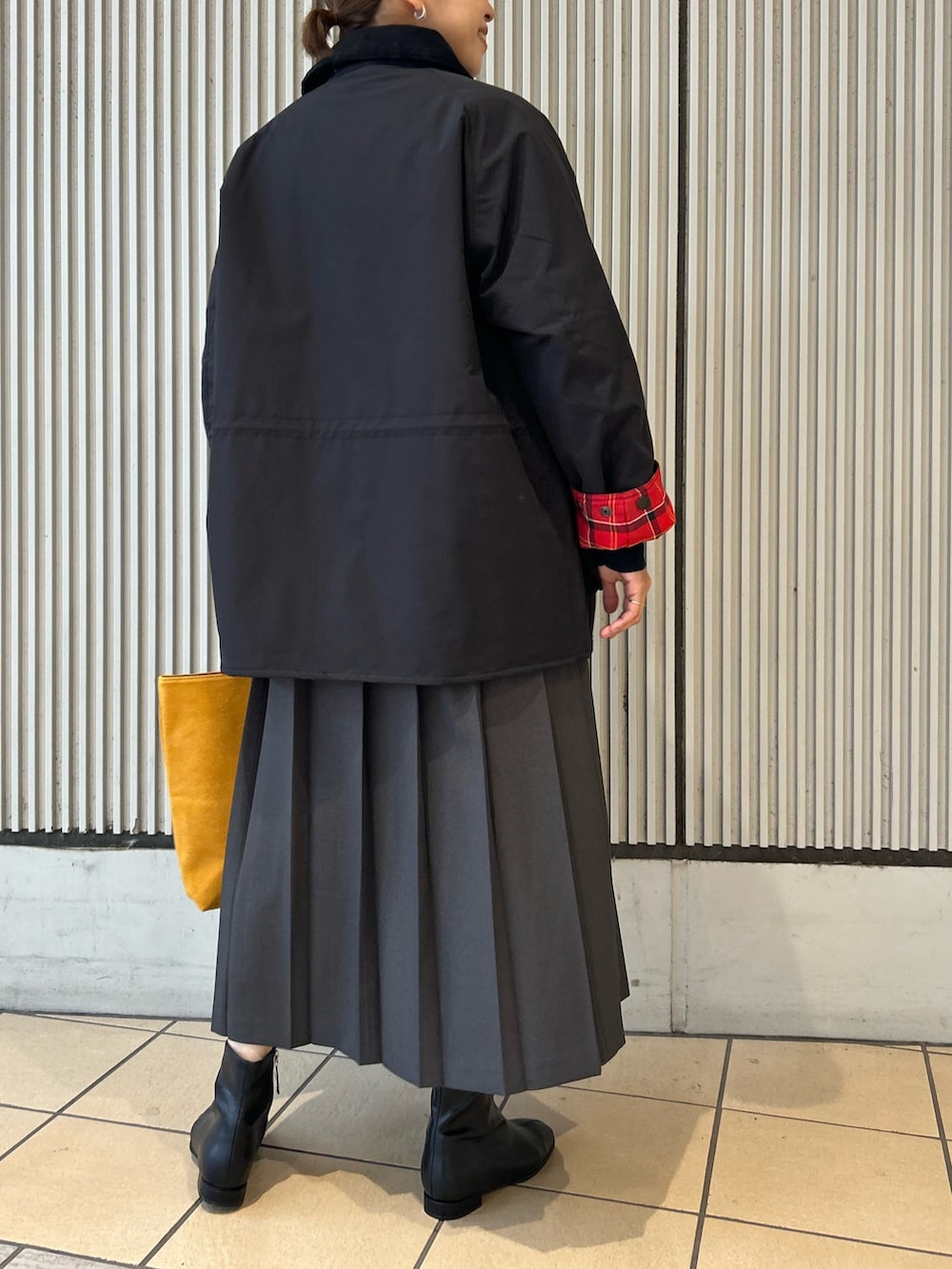 ライナーの鮮やかなチェック柄がポイントで、ウエストのドローコードを絞ることができるのでシルエットを変化させて楽しめます👏✨また、中綿が入っていて保温性もバツグンなので気温が下がったらすぐに来たくなるアイテムです🙆♀️