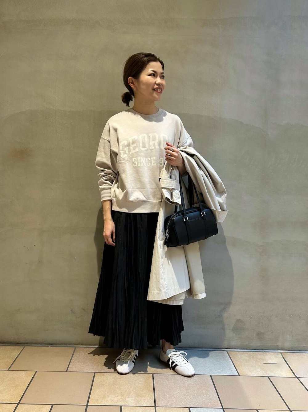 ヴィンテージライクなカレッジスウェットは、着る時期が長く、ワードローブにぜひ加えたいアイテムです!中でもベージュはロゴが主張し過ぎず、カジュアルにもきれいめにも合わせられるのでとってもおすすめです🙆♀️