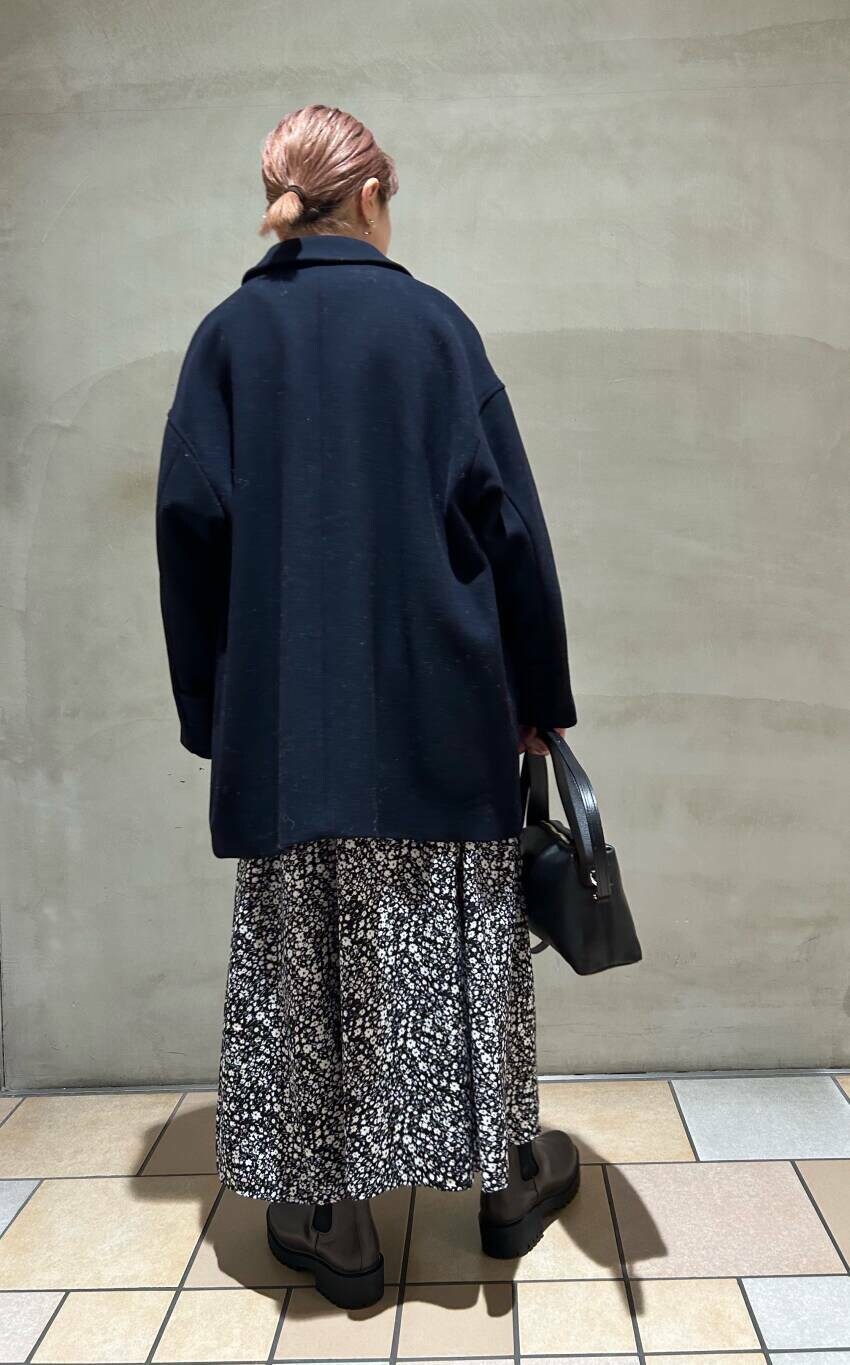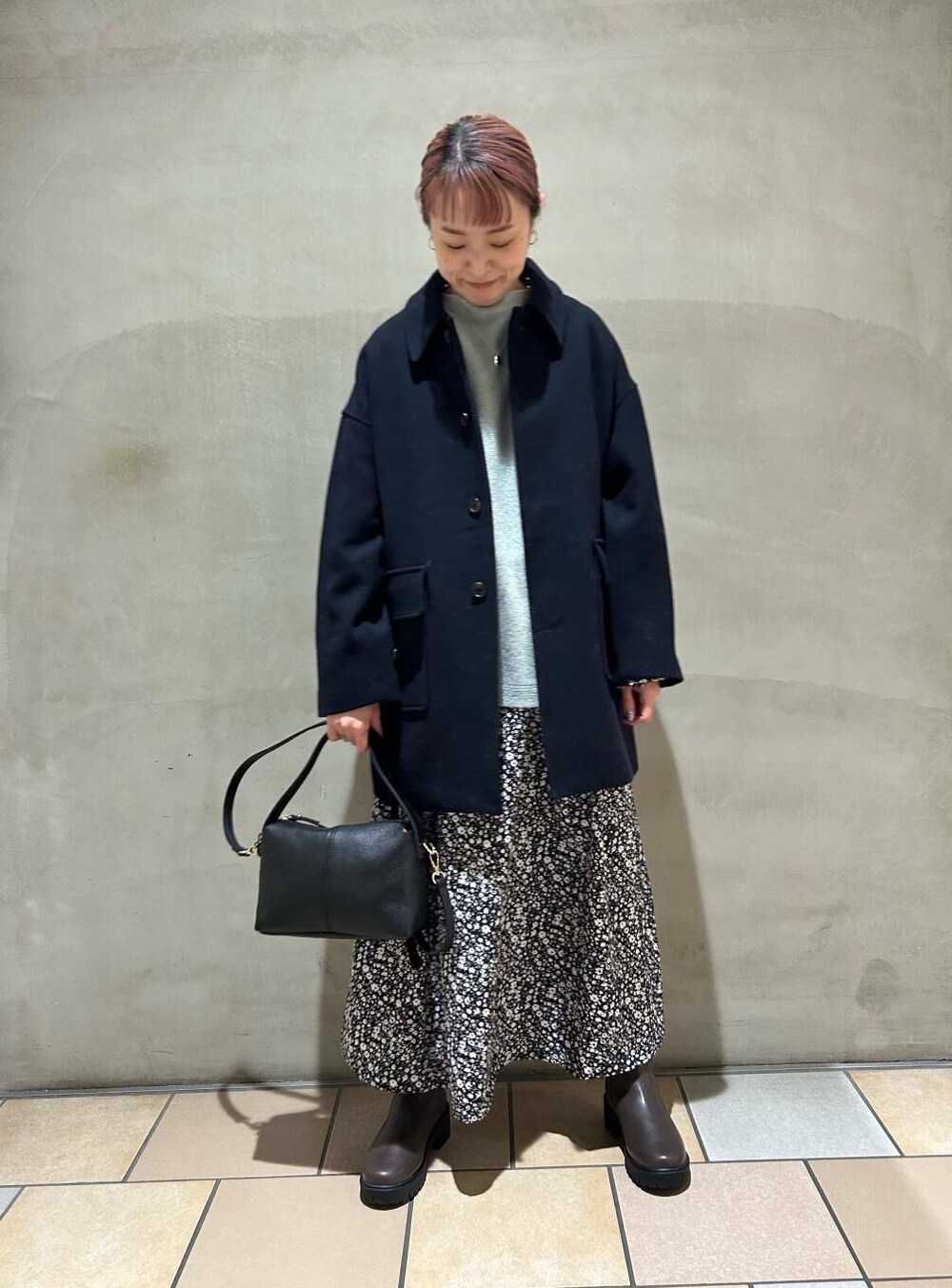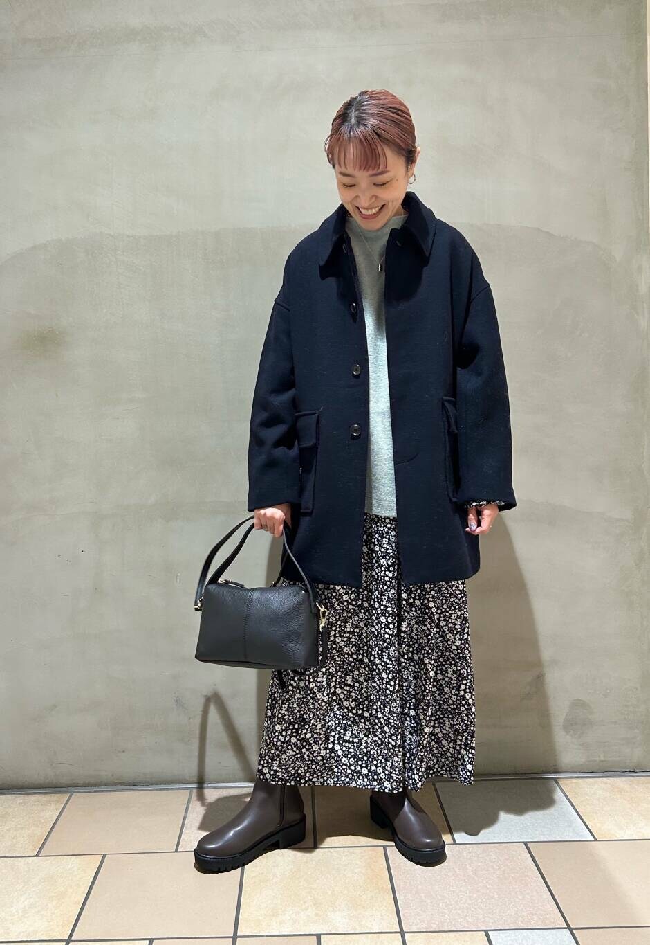 花柄ワンピースにニットを重ねてみましたコーデです。寒い日が続きますが、明るいカラーを着ると気分が上がります!