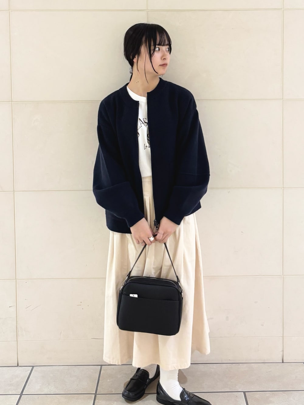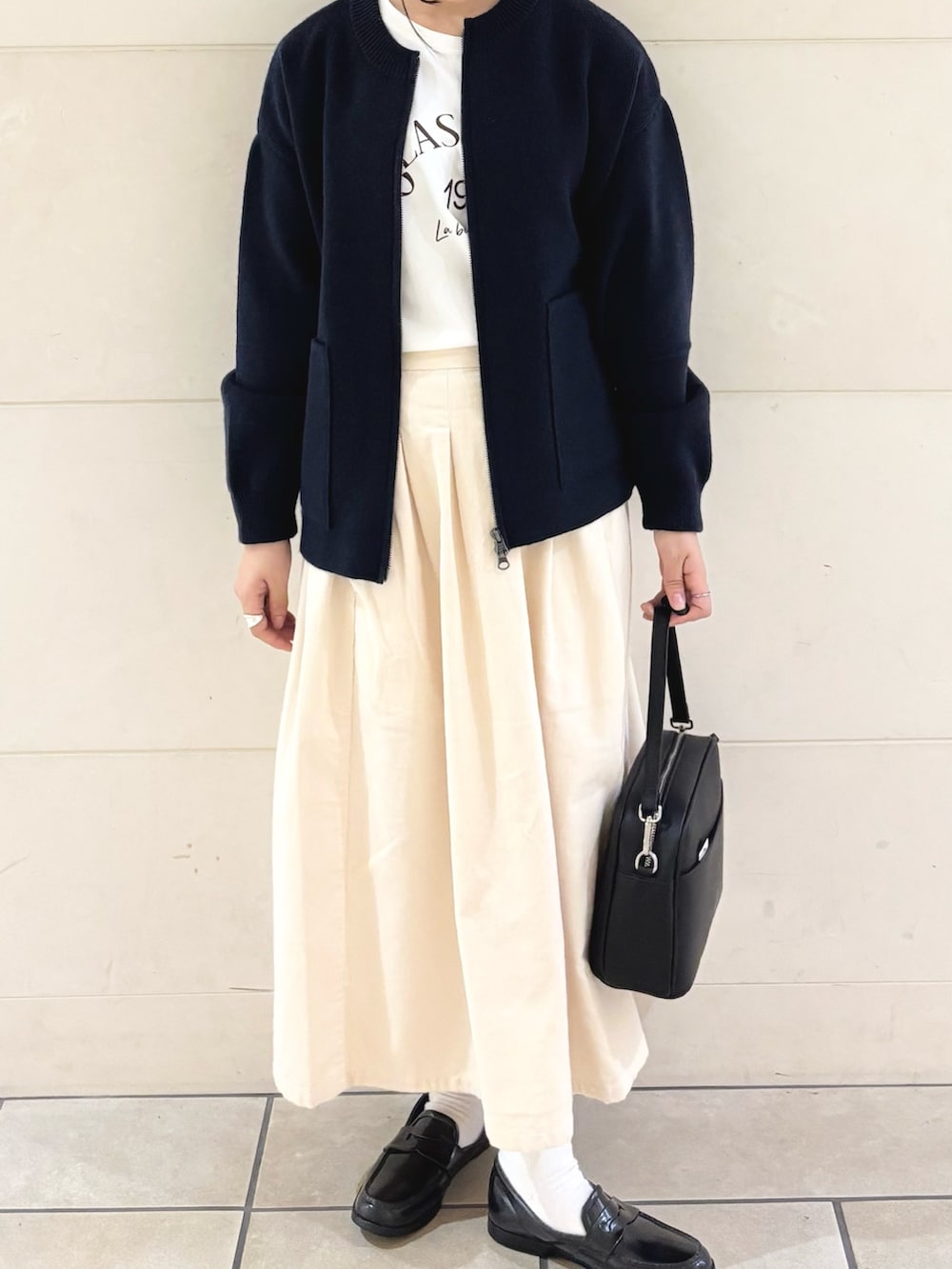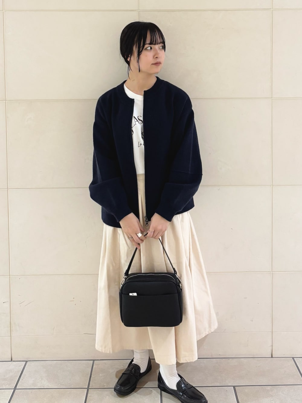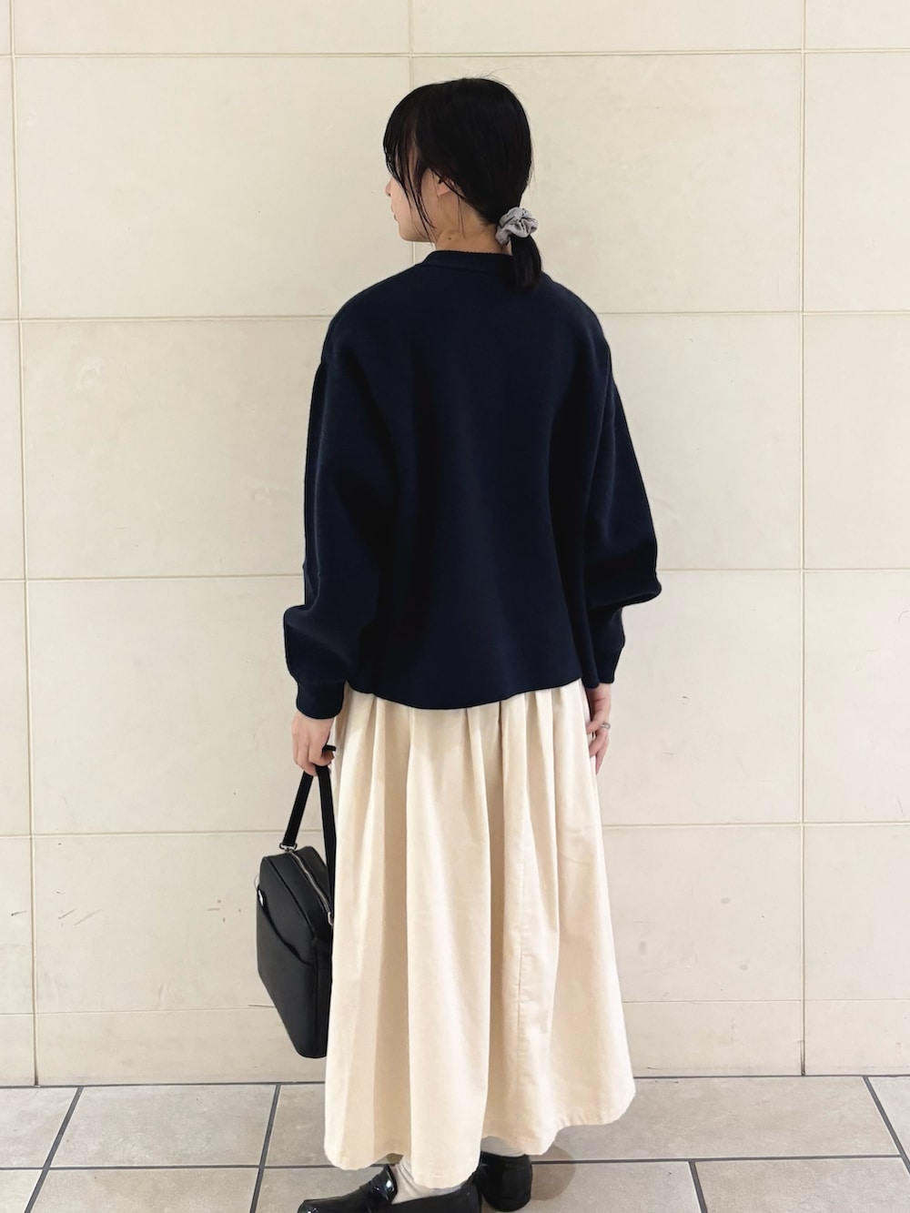 肩のラインは少し落とし気味に設計されており、自然とゆったりとした抜け感があって女性らしいシルエットです!今季は新色ネイビーを加えた3色展開にリニューアルしてます♩