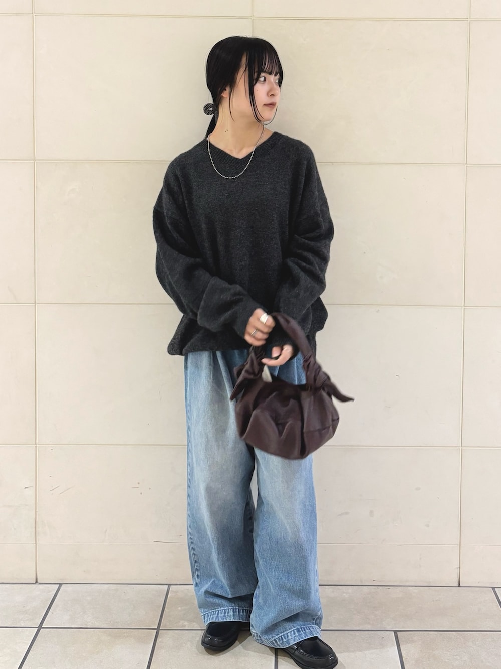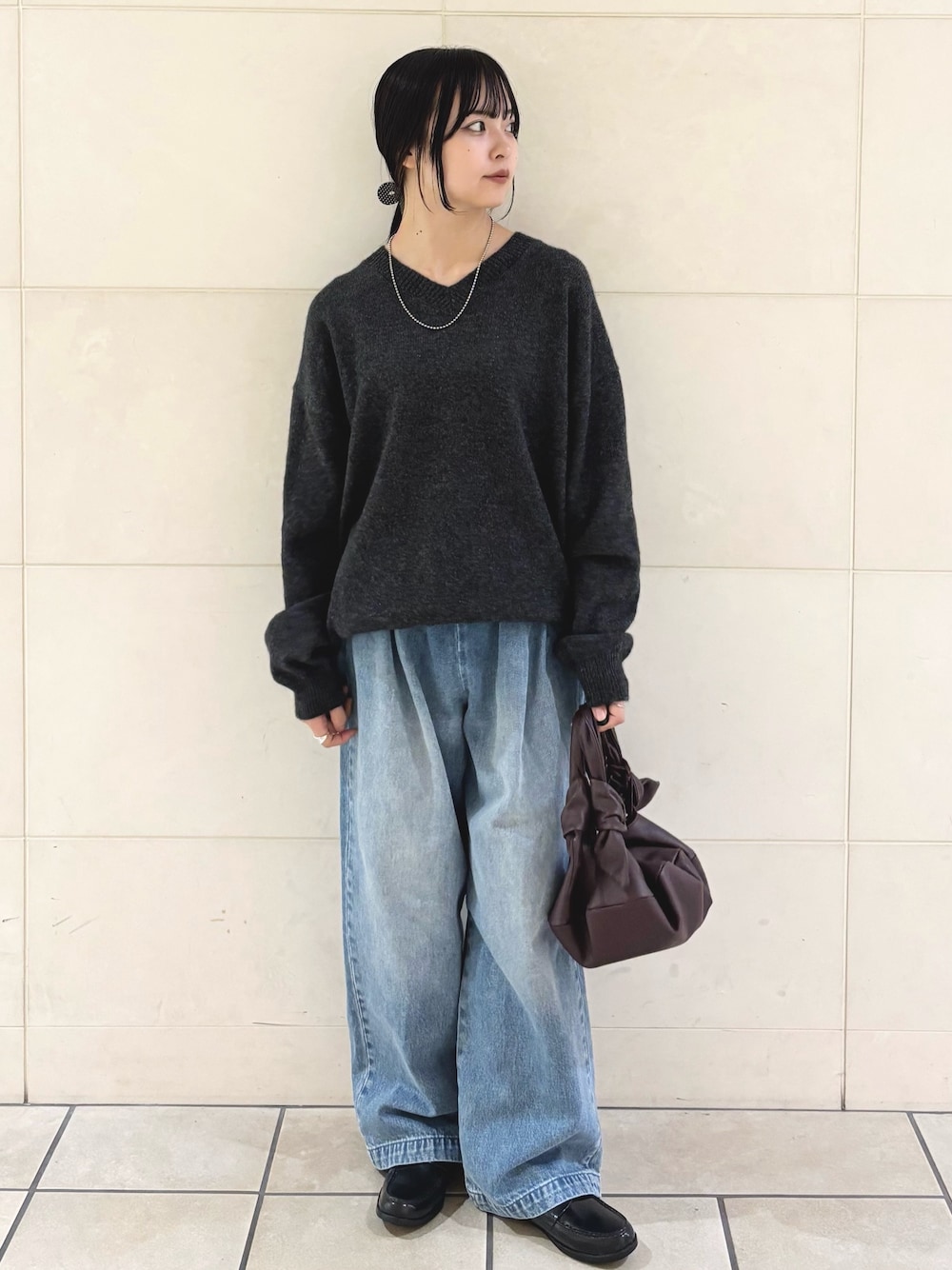 ボトムを合わせるだけでコーディネートが決まります◎カジュアルからきれいめまでスタイルを選ばないアイテムだと思います!インナーにクルーネックTを合わせて首元からのぞかせるスタイリングも可愛いのでおすすめです♪
