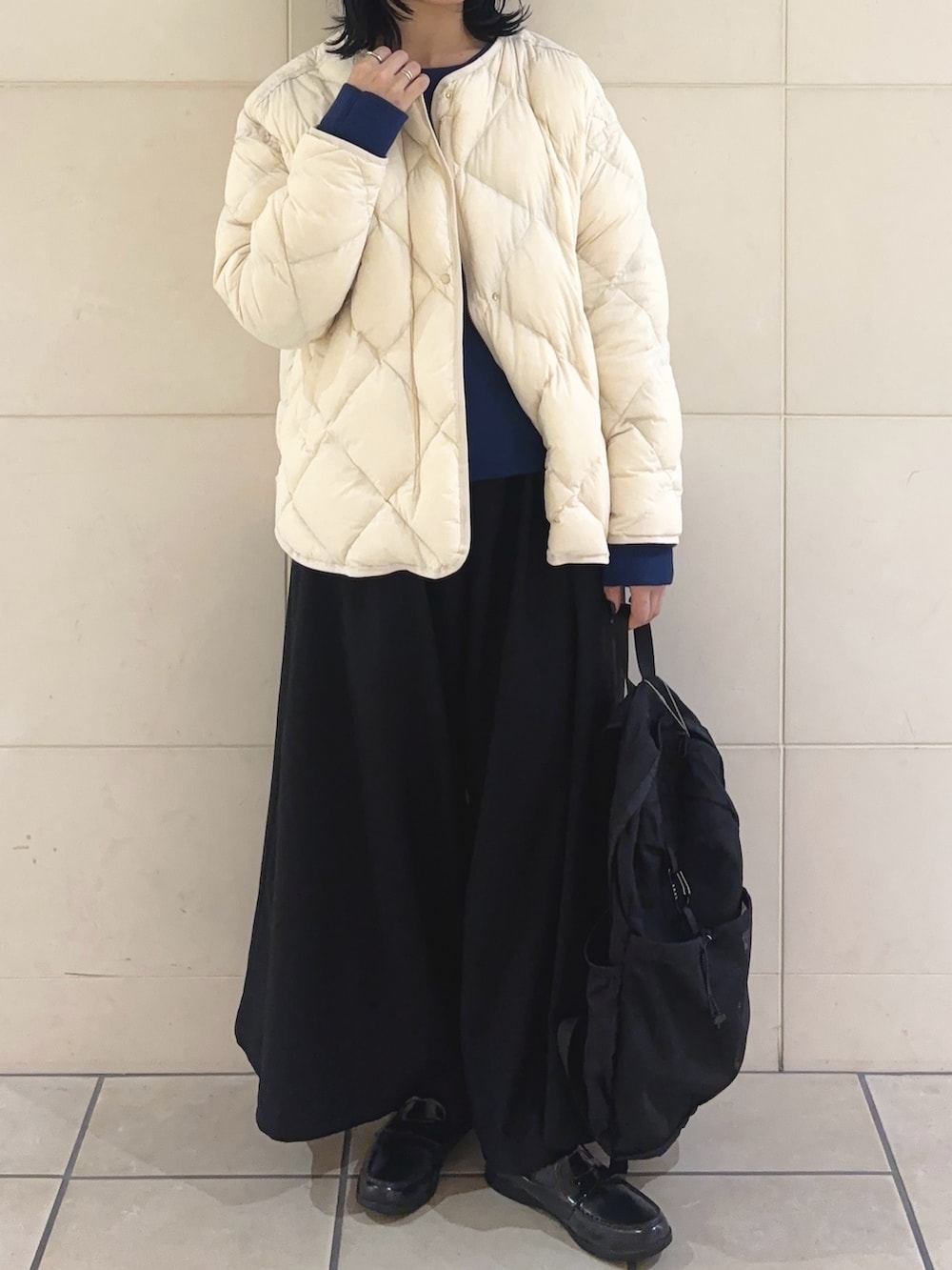 パンツはワイドなシルエットなので、スカート風に見えて、綺麗めにもカジュアルにも合わせていただけます!