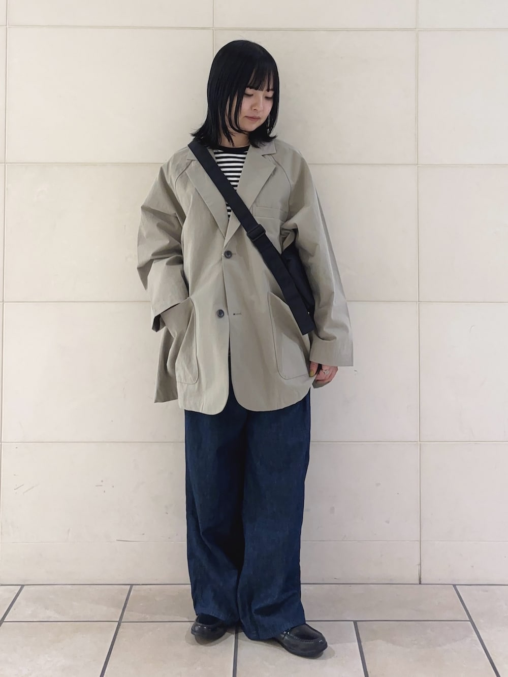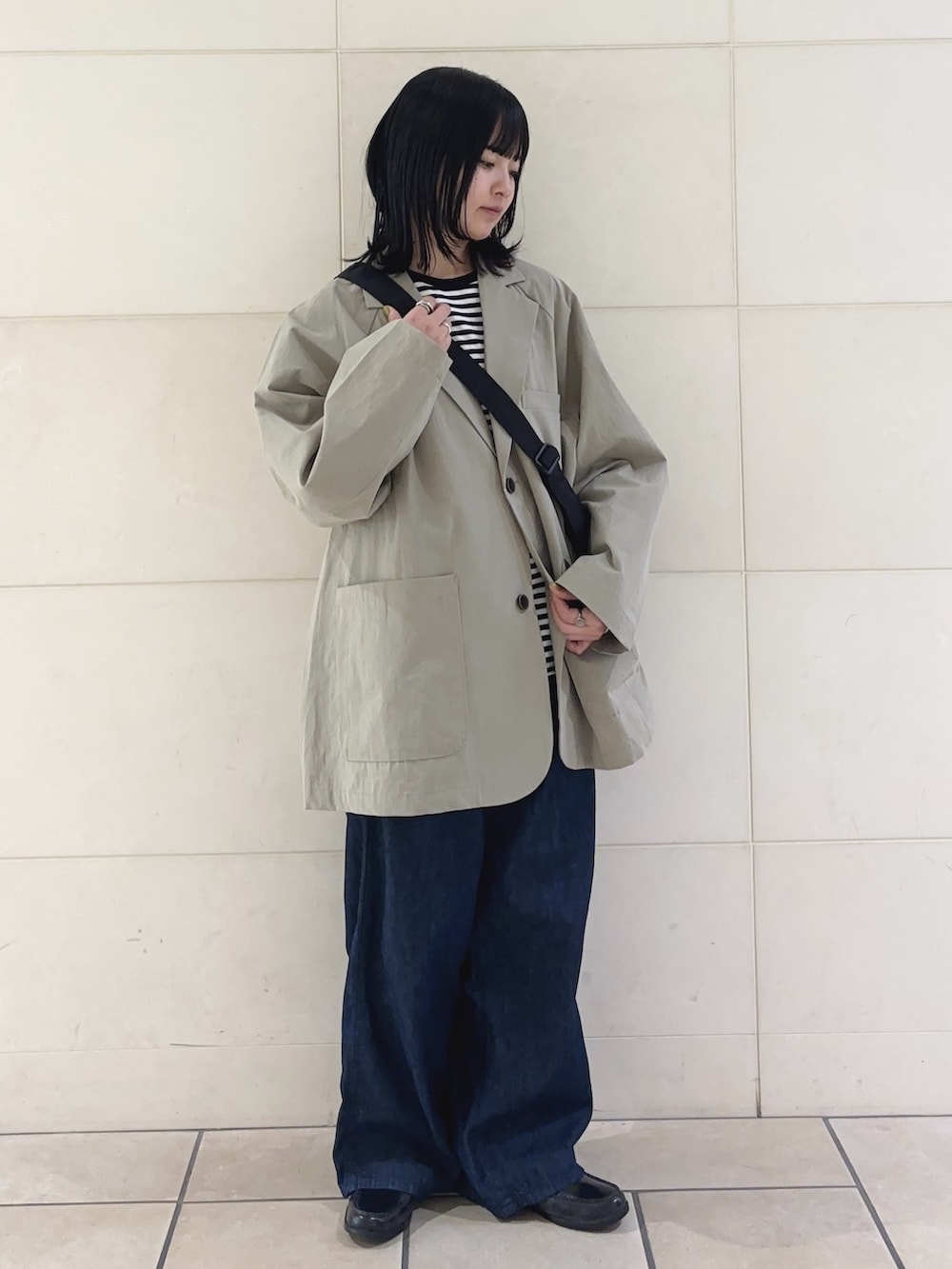 かっちりしがちなジャケットをワイドシルエットでカジュアルなテイストがプラスされています◎見た目以上に軽く、肩張らない素材が気兼ねなく着られ程よくマットな質感で品のある印象もあります✨バランスのとれたワイドシルエット、首元すっきりとした開きが女性らしさも忘れずの一着です。ボーイッシュなスタイリングにマッチします!