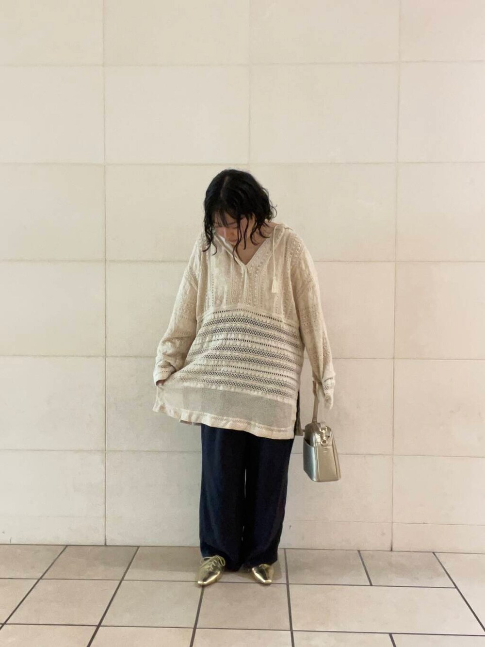 細かいレースなので、そこまで透け感も気にならず、オーバーシルエットですが重たくなりすぎずで取り入れやすい一着になっております♪