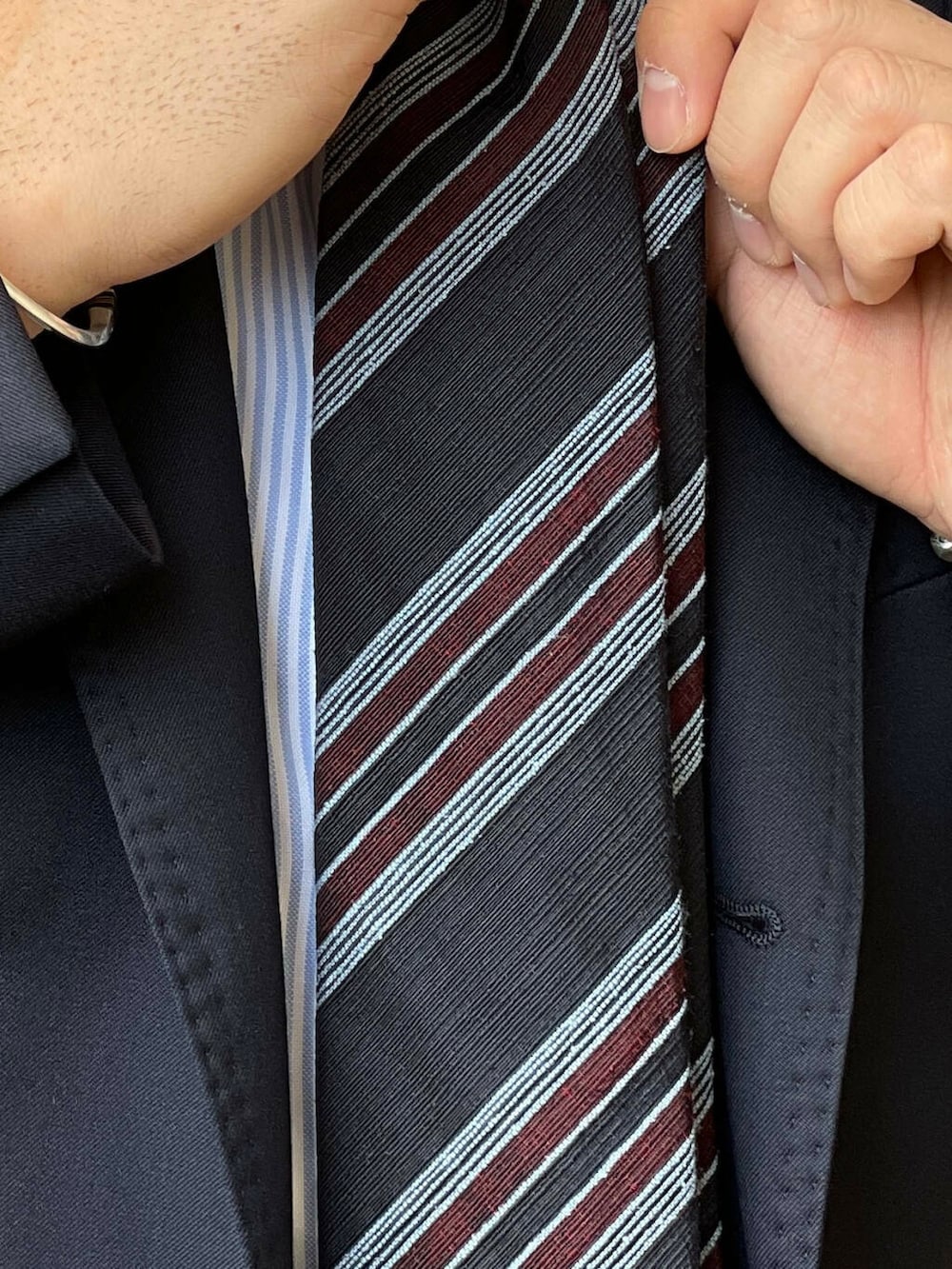 ネクタイは伊BBCのファブリックを使用したジャカードタイ。