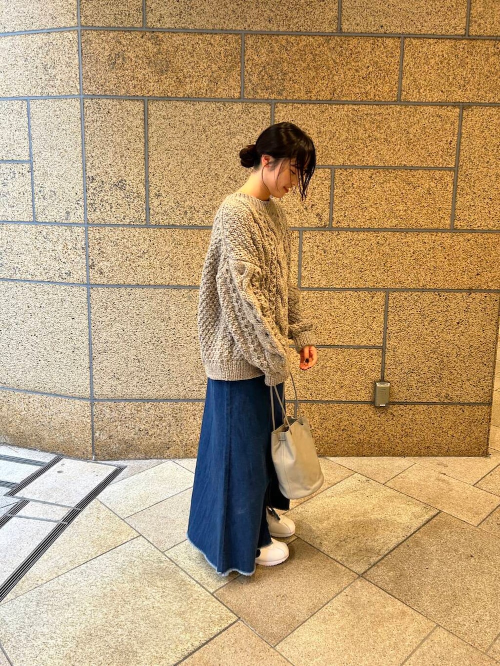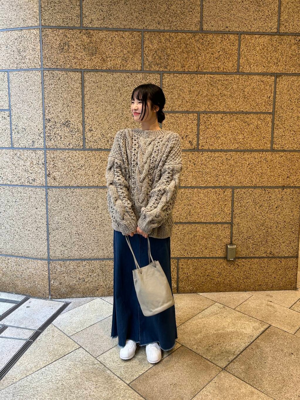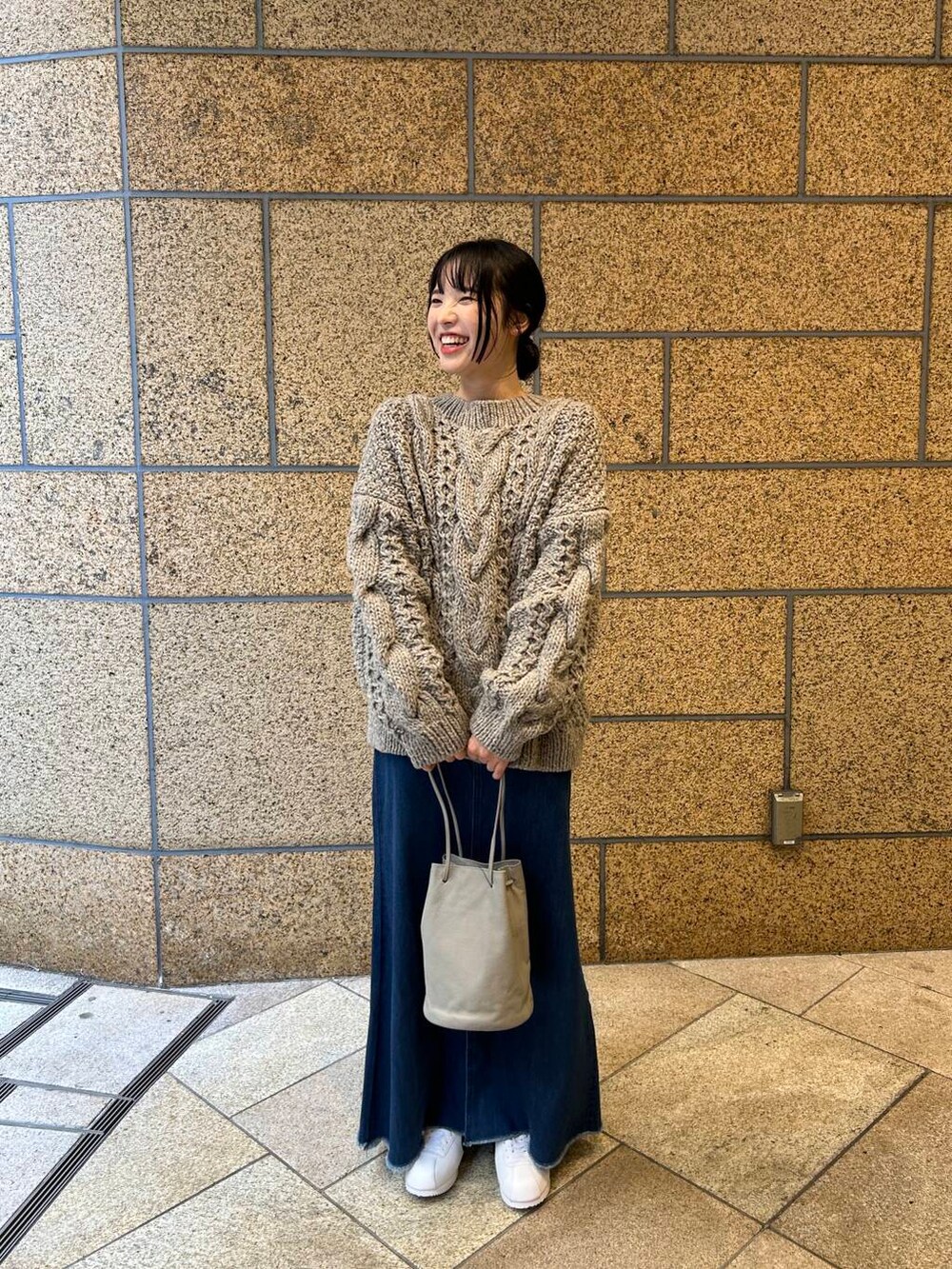 かなり存在感のあるニットなので、スカートで落ち着かせてスニーカーでカジュアルに合わせてみました🐈‍⬛