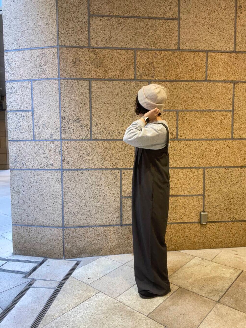 トップスと同系色の色味でも素材感が違うとまとまりがあって◎