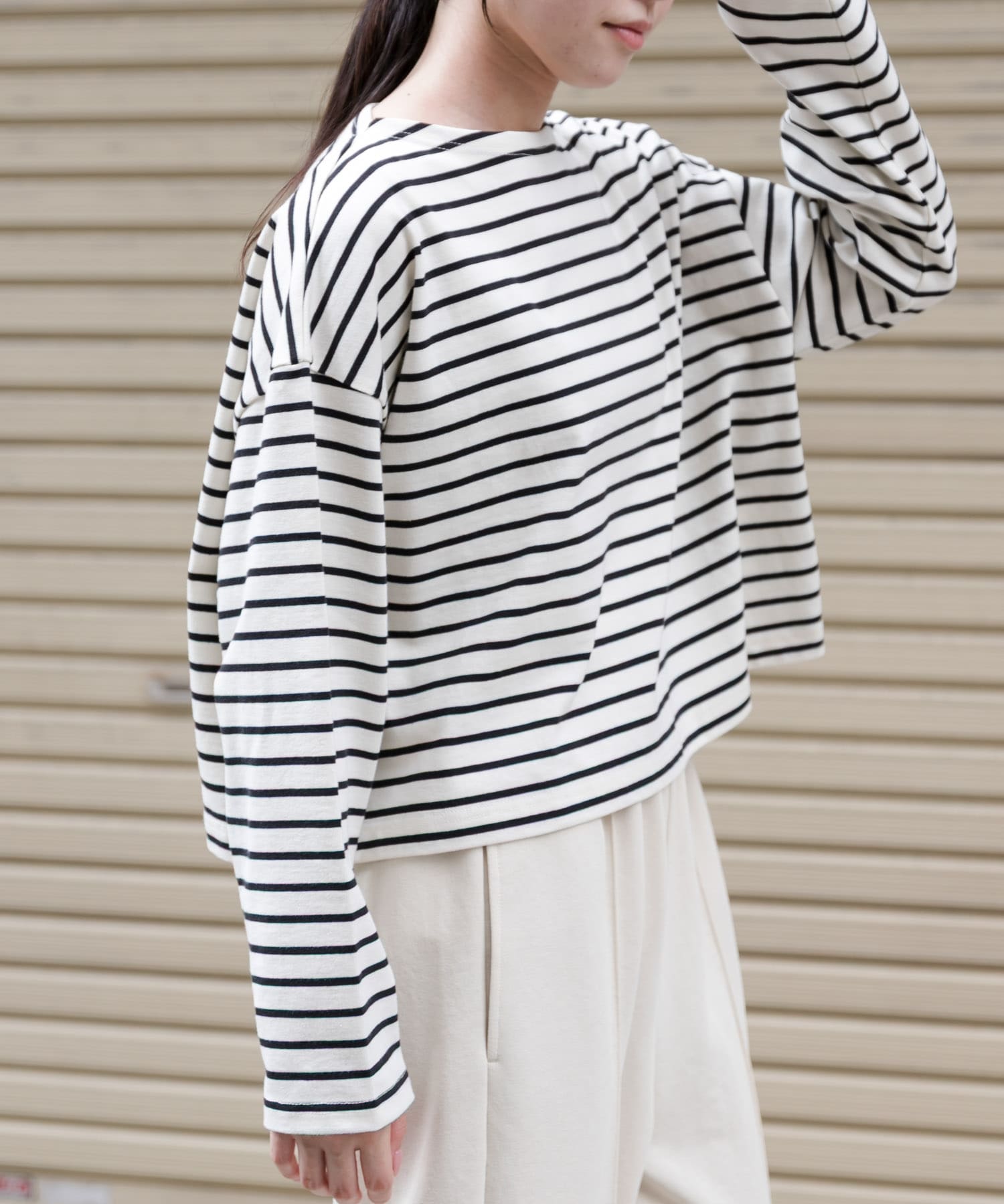 DOORSFORK&SPOON クロップドボートネックカットソー- 着用カラー: