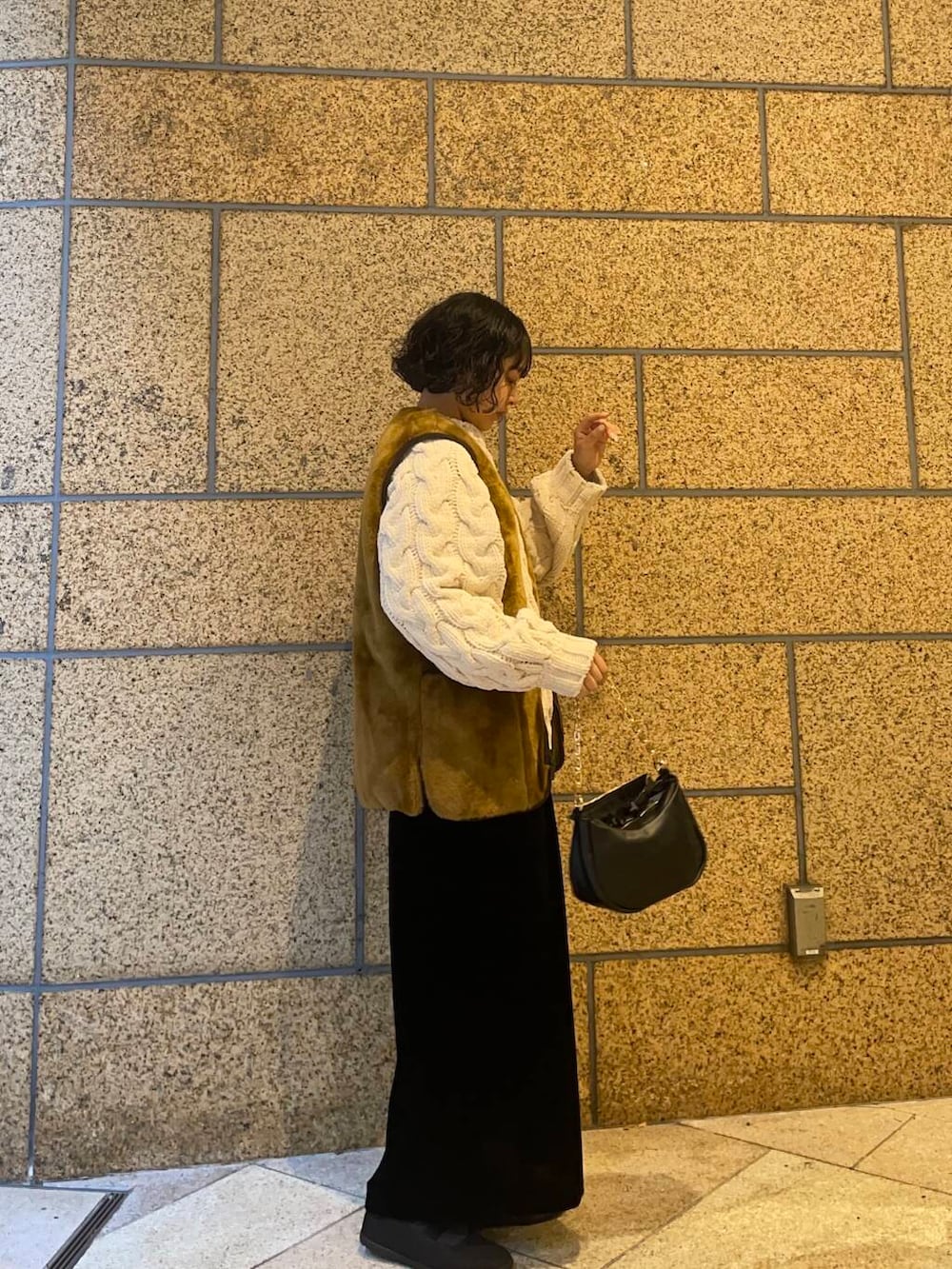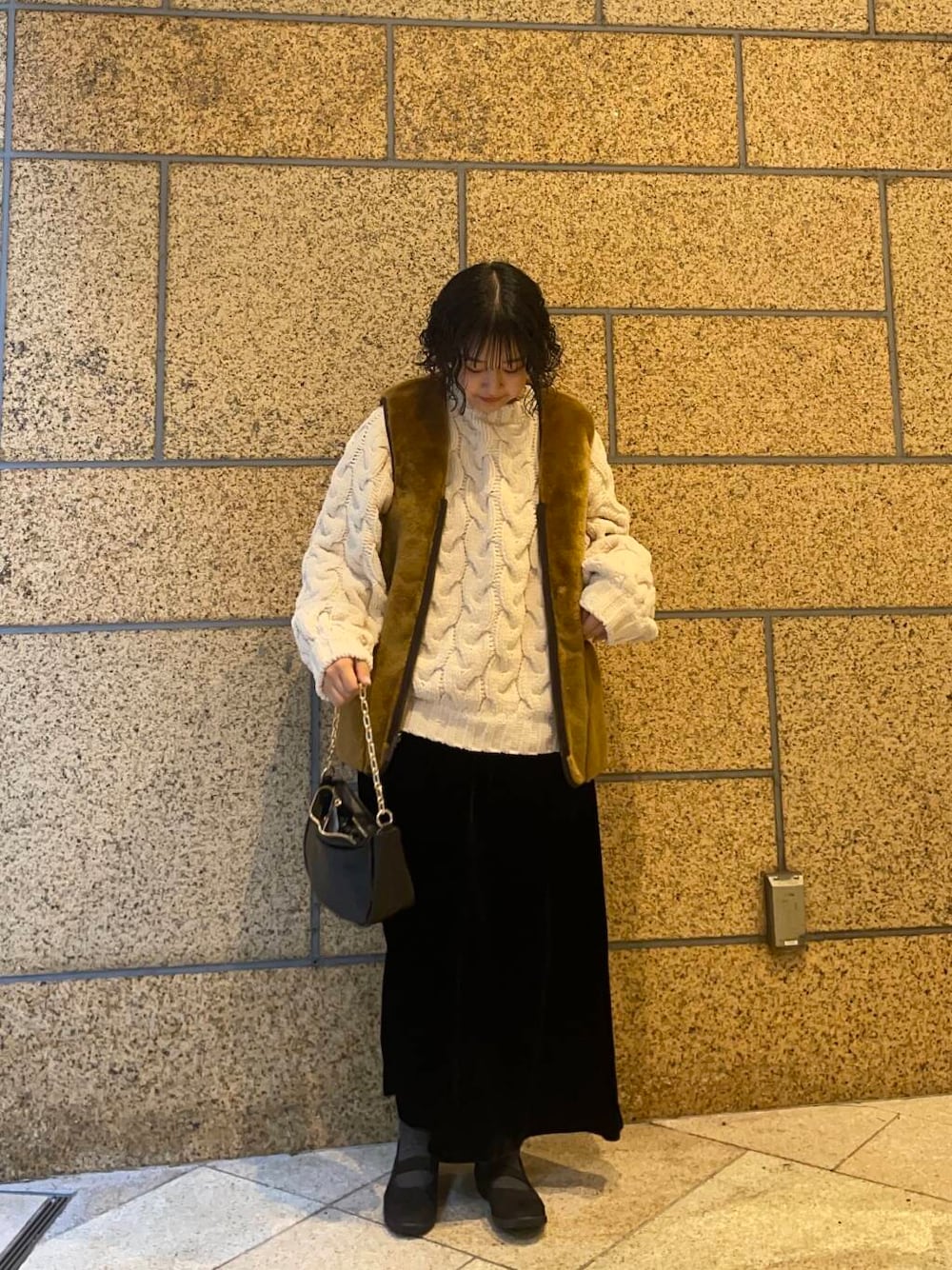 1枚で存在感のあるニットにバブアーのベストを重ねてみました!