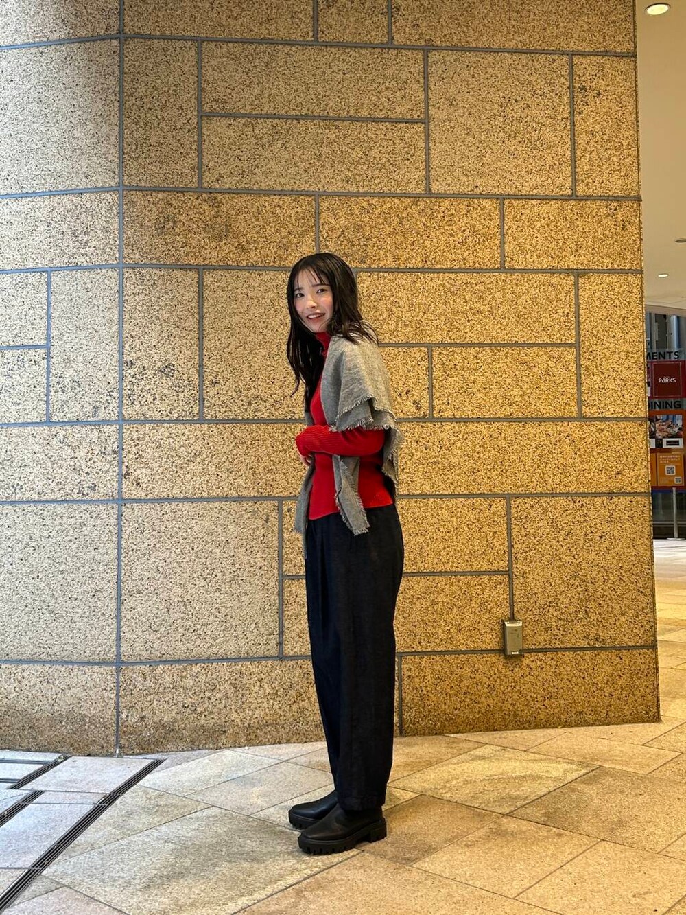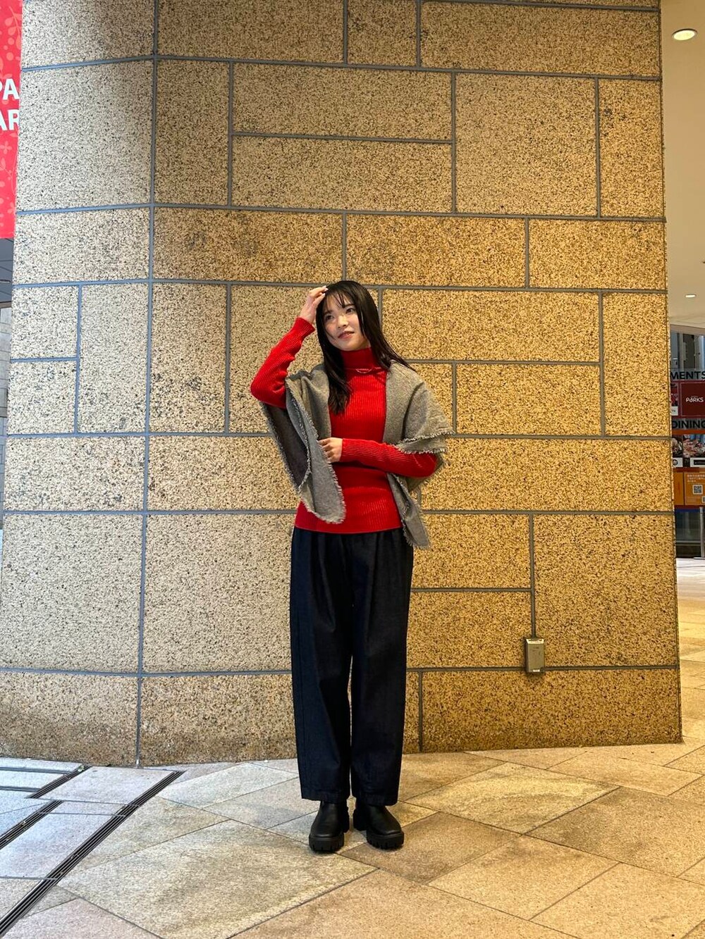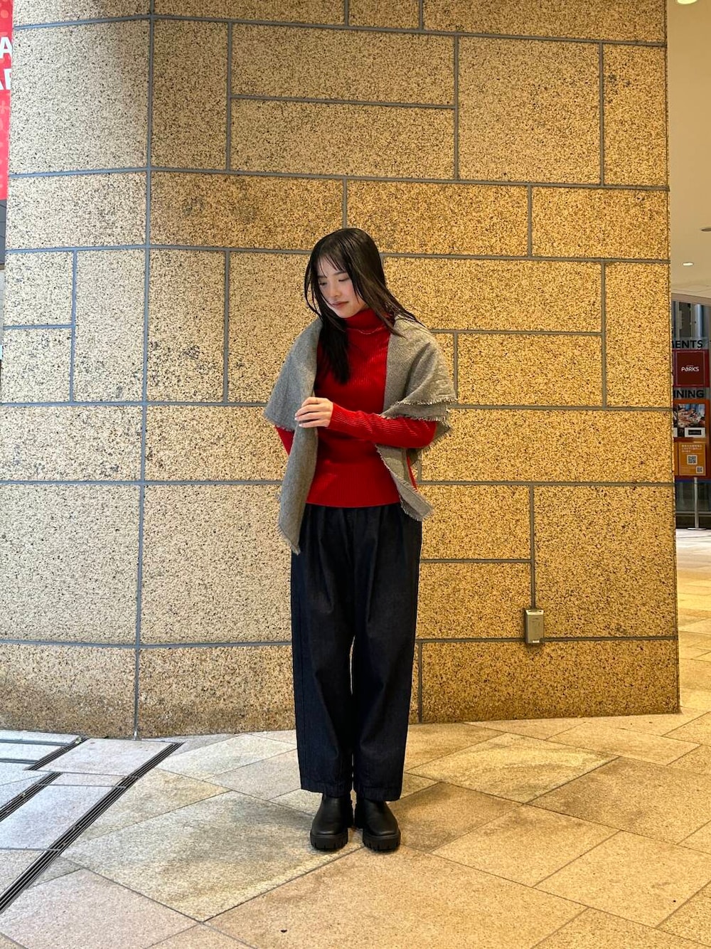 デニムと赤の相性はすごく良く、それにかぐれのストールを合わせてみました〜🧣