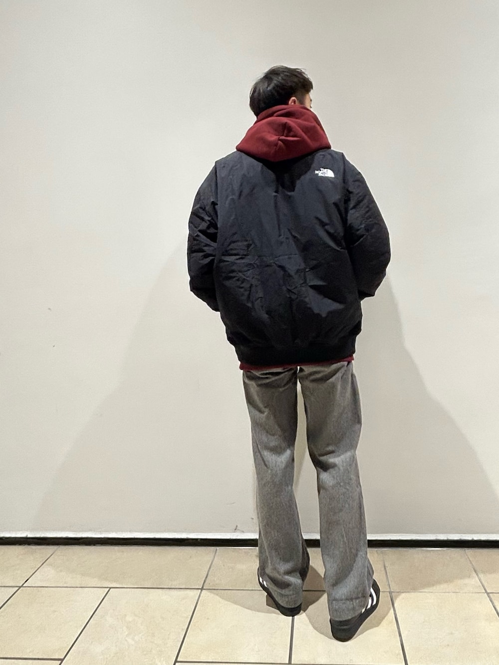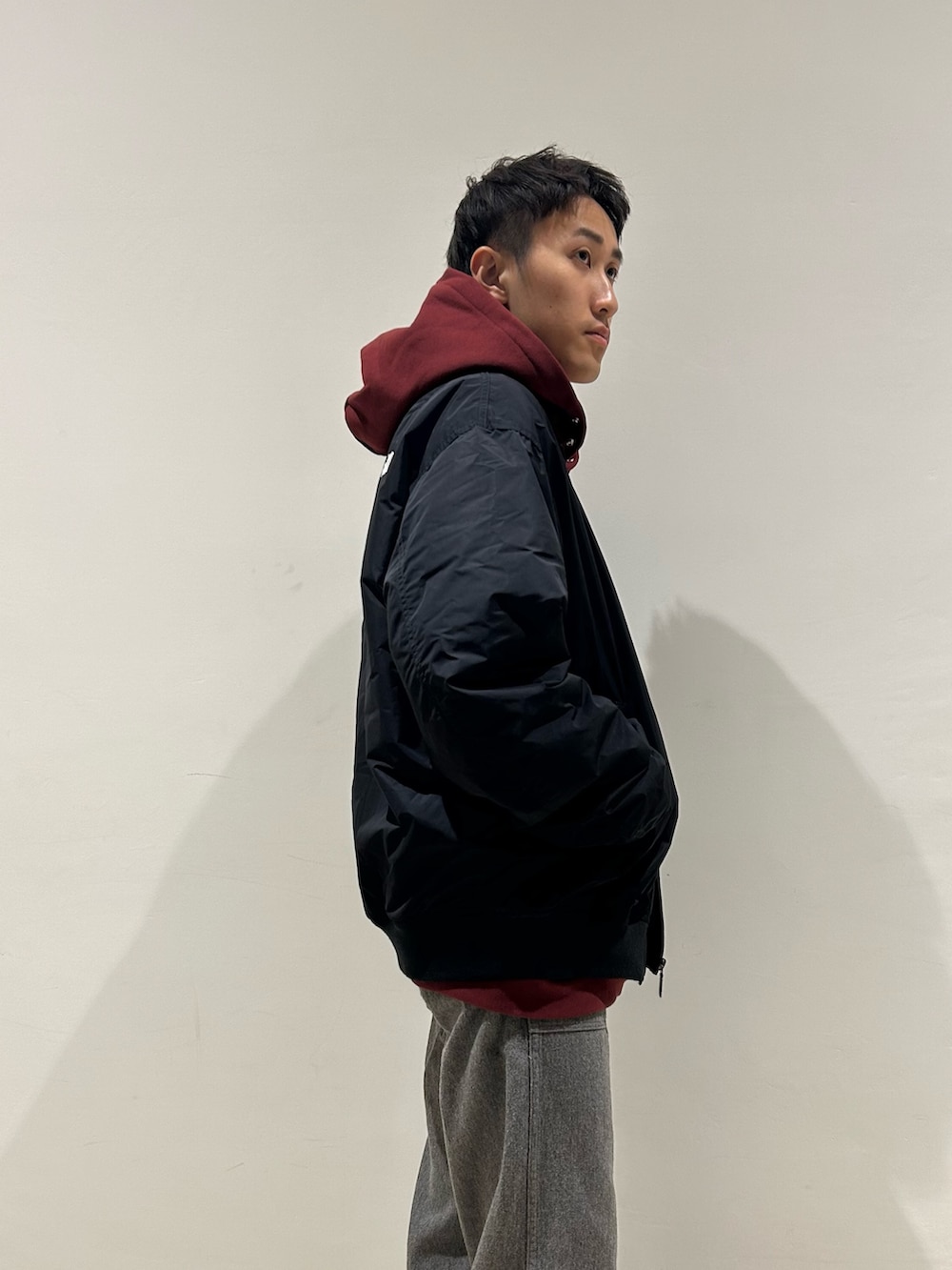 CHAMPION別注パーカーとTNFのボンバージャケットでオーバーサイズコーデ。