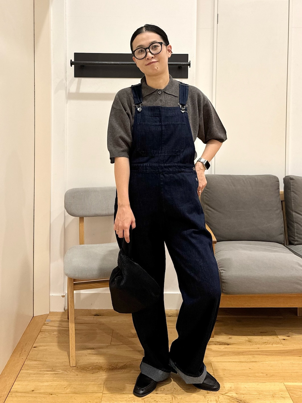 合わせは、ニットポロで好みの感じに^^