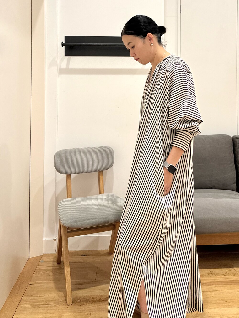 私が着るとくるぶしがかくれるかな?くらいです。