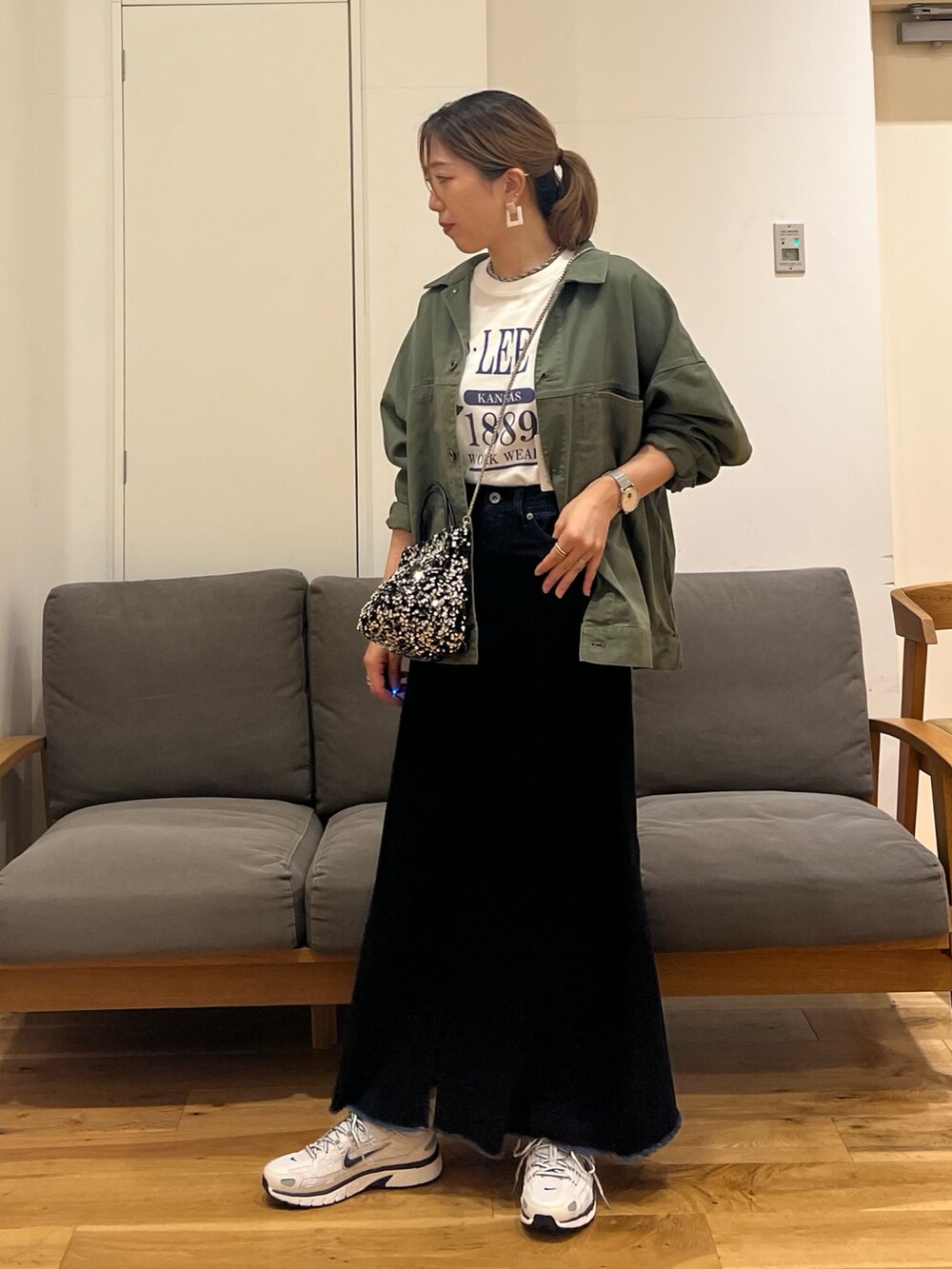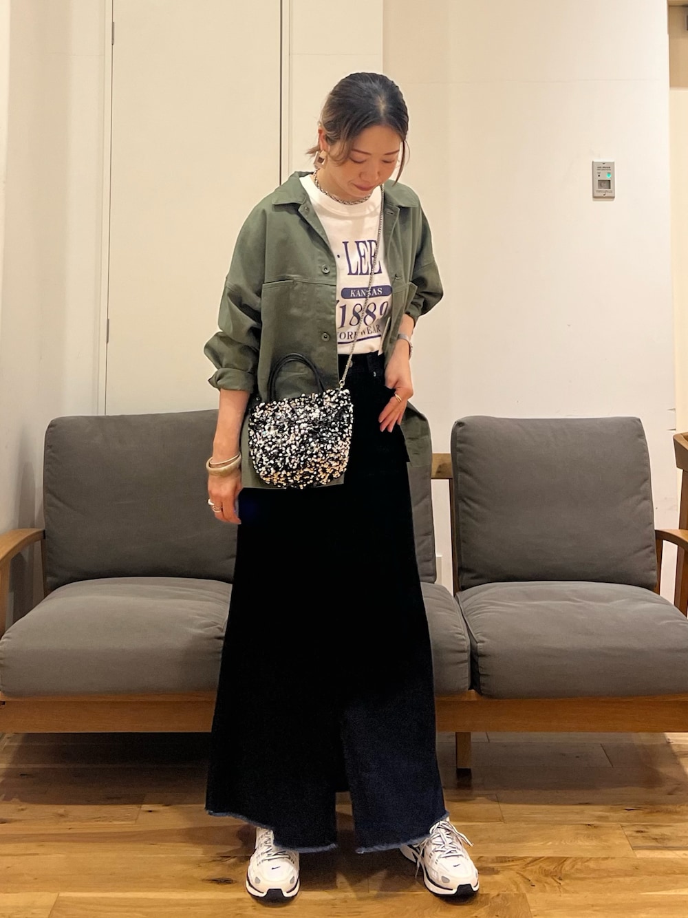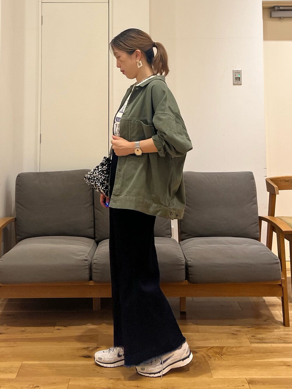 ゆったりシルエットなので、パーカーや厚手ニットをインナーに入れていただくと冬まで長期間活躍してくれますよ^_^