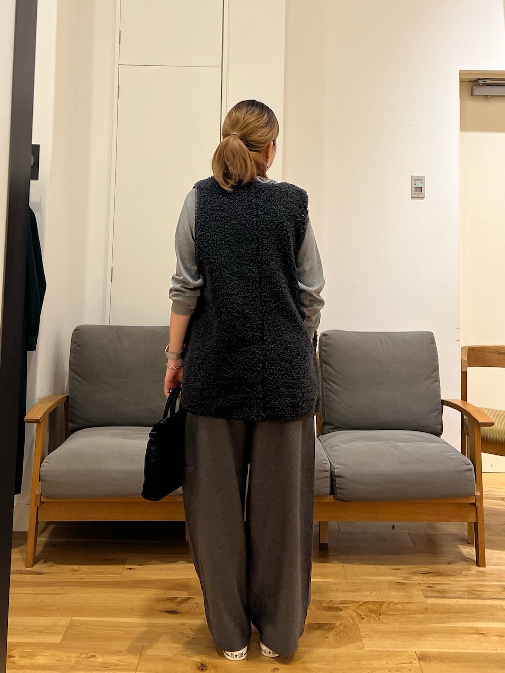 お尻がちょうど隠れるくらいの丈感なので、どんなボトムスとも合わせやすいと思います。