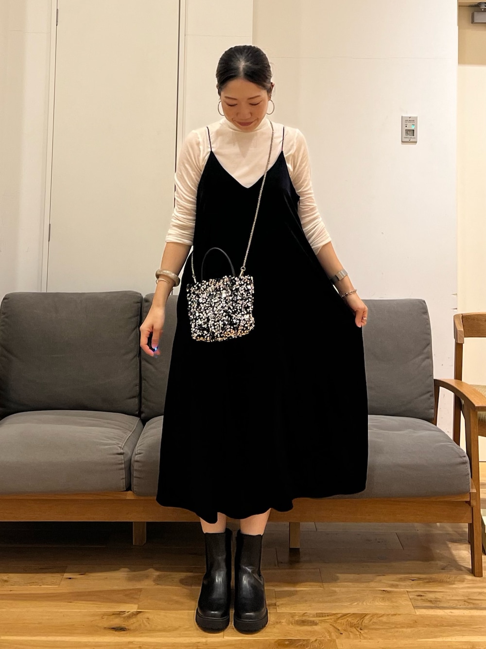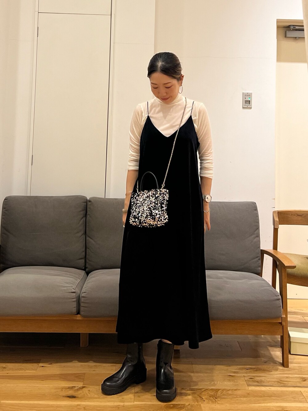 ベロア生地の華奢なストラップワンピースなんて、可愛い以外の言葉が見つからないですよね笑
