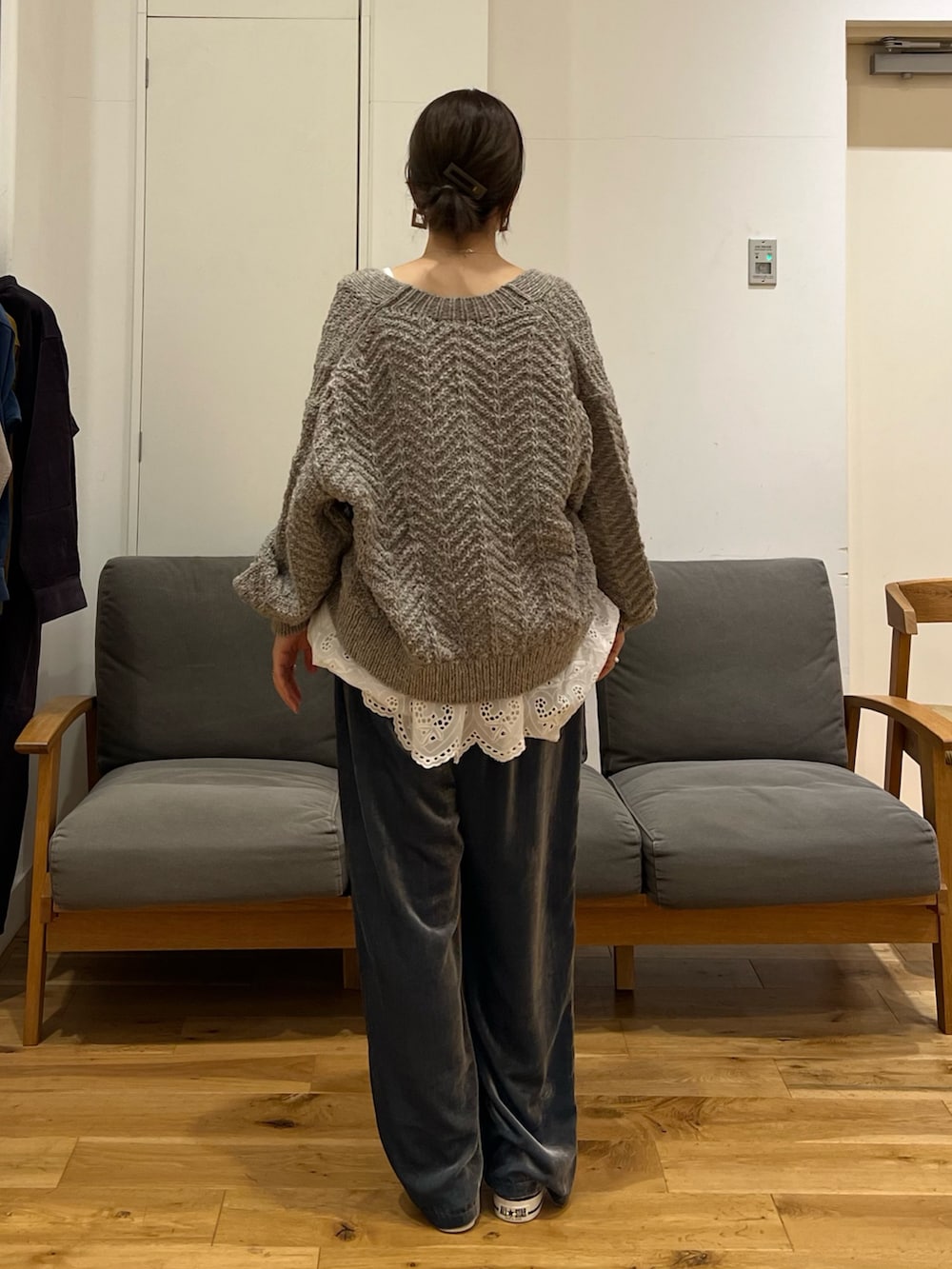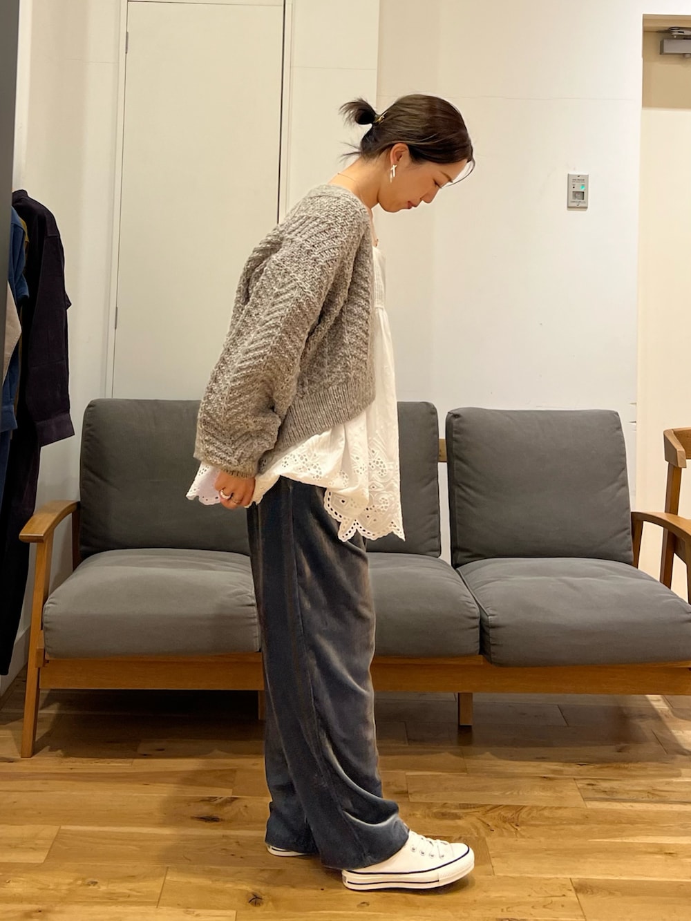 ざっくり編みのニットカーディガン。。世代関係なく愛されアイテムじゃないでしょうか^_^