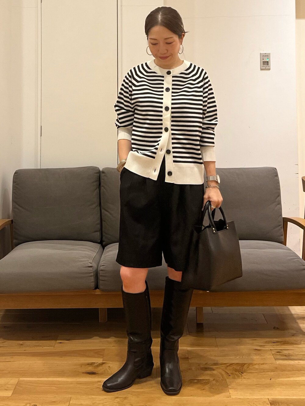 ということで、ロングブーツに合わせてこんな大人ショートパンツコーデはいかがですか^_^