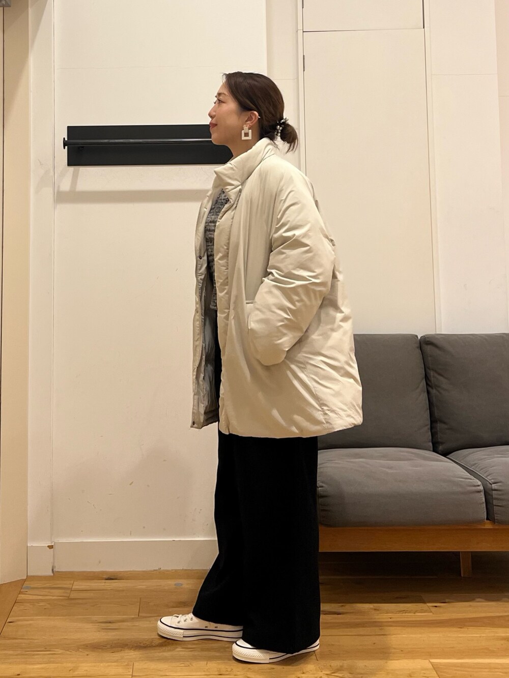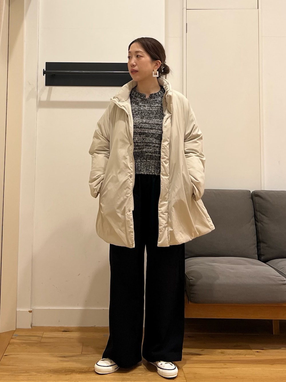 オーバーシルエットにスタンドカラーの襟元がトレンドを押さえているので、カジュアル過ぎずオシャレに着れますよ^_^