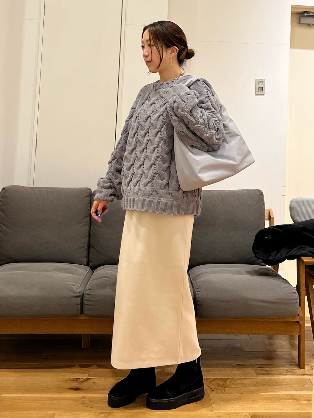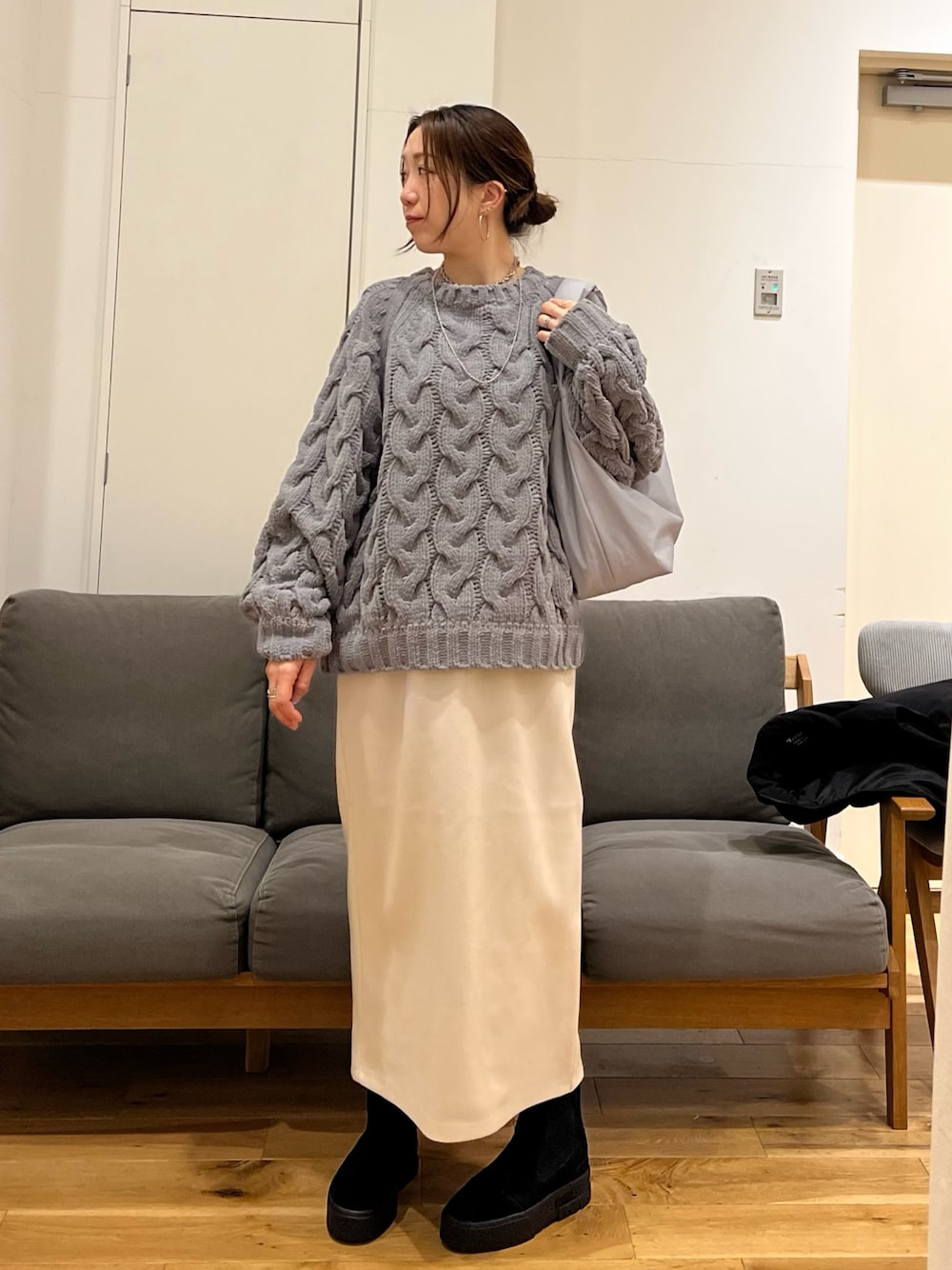 ざっくりケーブル編みが女性らしい可愛さがあります^_^