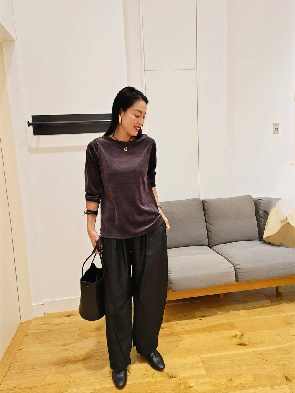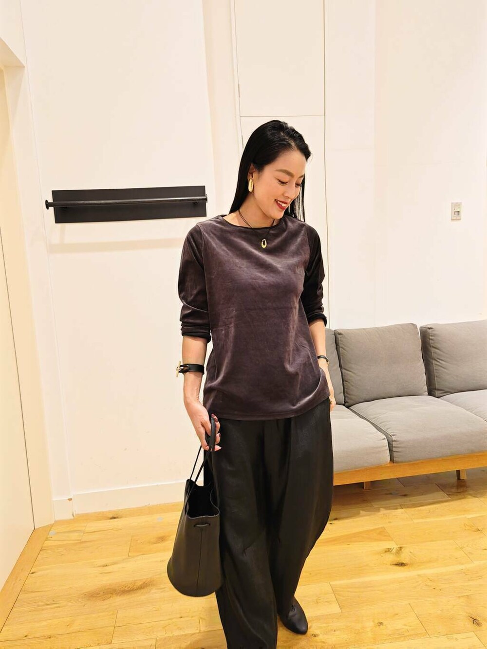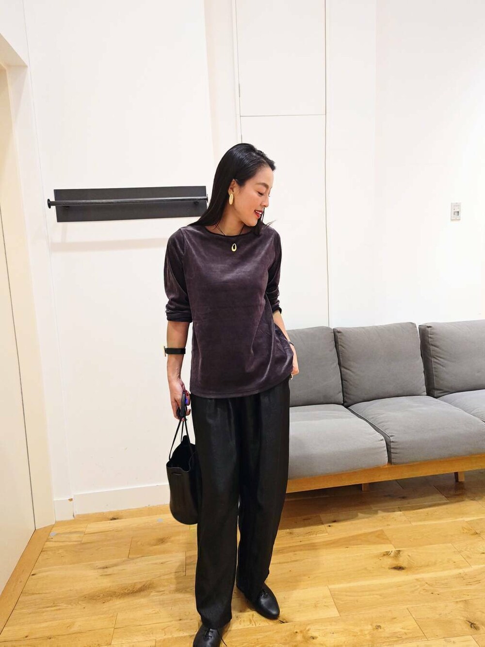 マット過ぎずシアー感もあり、薄手生地で肌触りも良くオススメ。