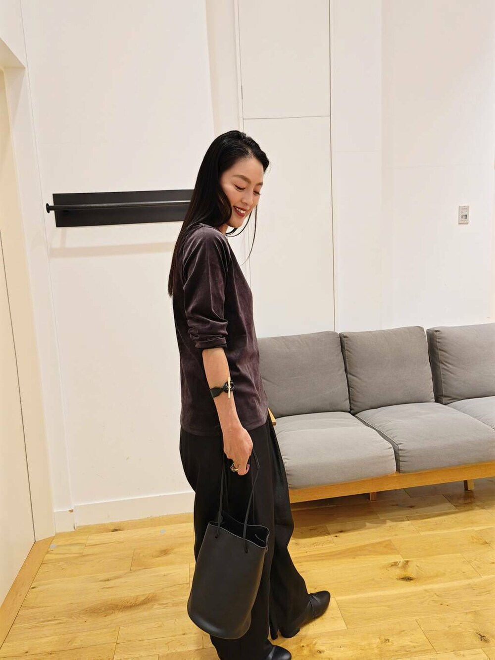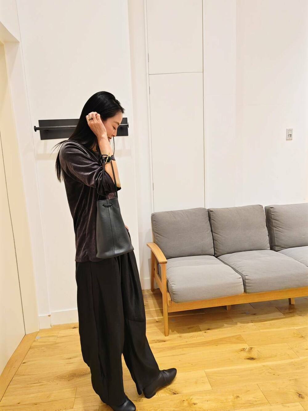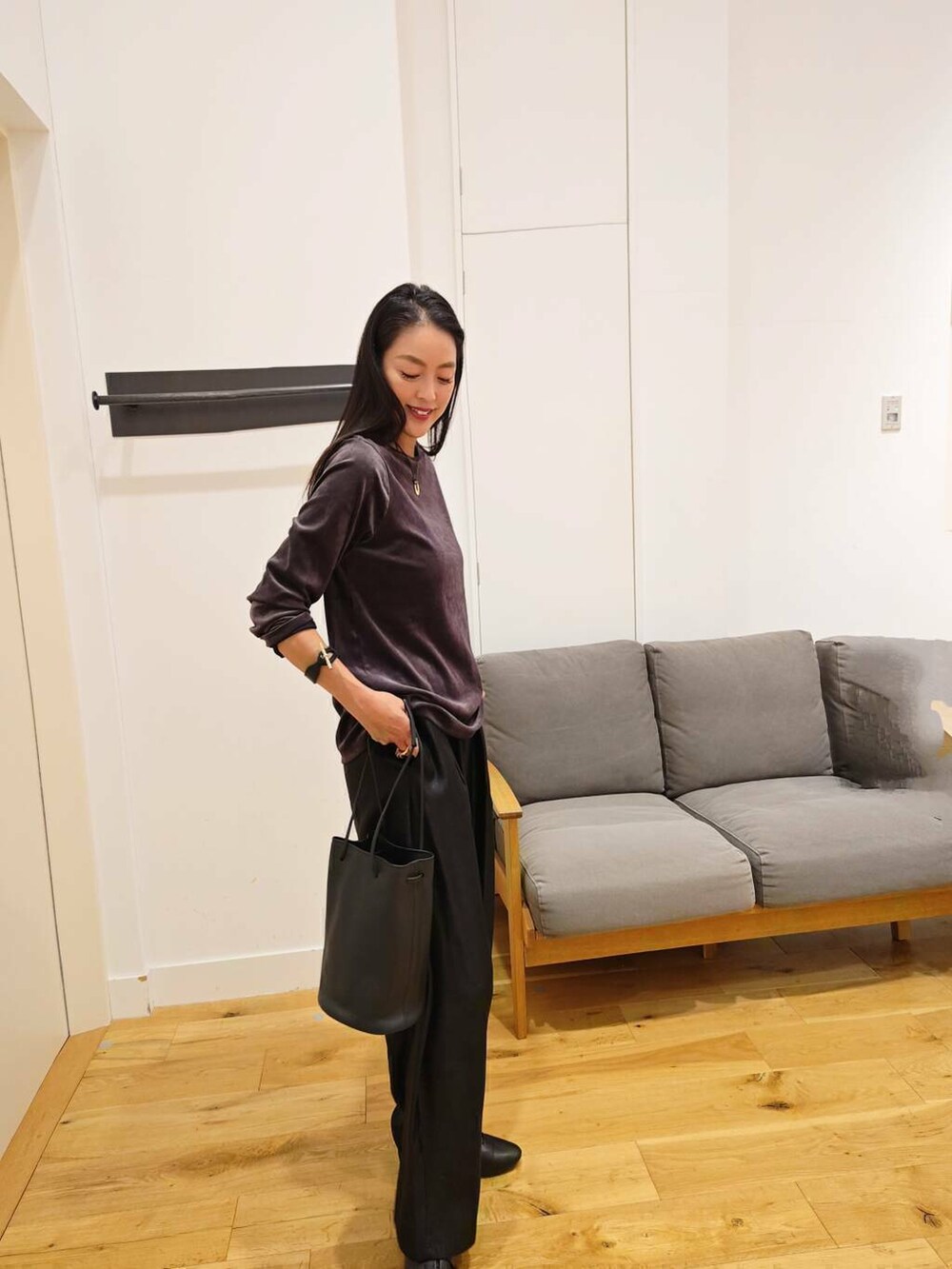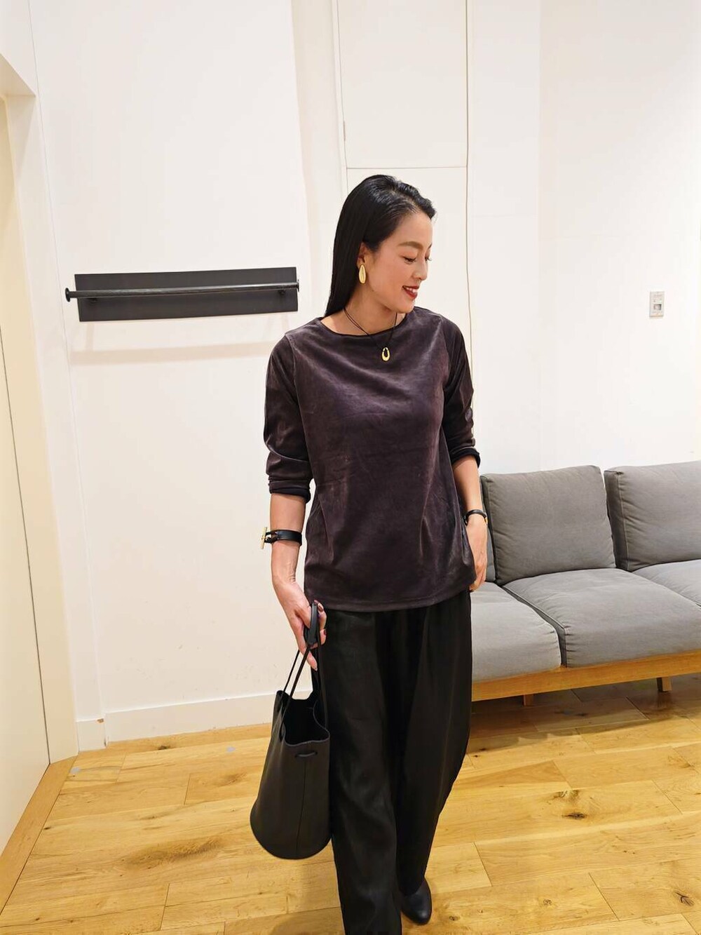 マット過ぎずシアー感もあり、薄手生地で肌触りも良くオススメ。